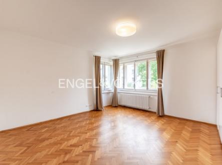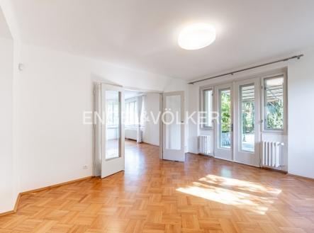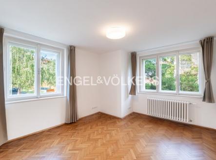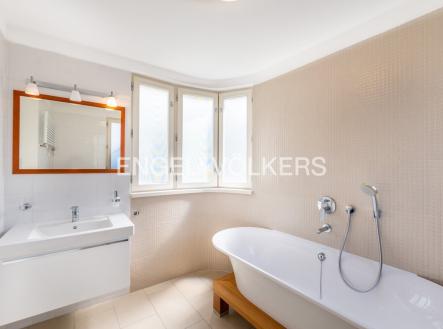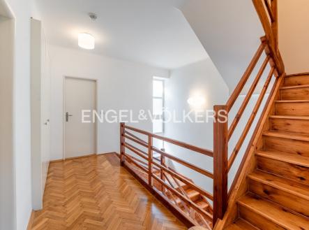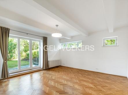 Elegantní vila 7+kk o rozloze 277 m² se vzrostlou zahradou a garáží pro 2 vozy v oblíbené lokalitě Malvazinky, Praha 5. Dispozice domu nabízí plně vybavenou kuchyň s moderními spotřebiči, která plynule navazuje na jídelnu s funkčními americkými kamny a světlý obývací pokoj se vstupem na terasu a do zahrady s výhledem do okolní zeleně. Na této úrovni se nachází také vstupní hala s vestavěnými skříněmi a samostatná toaleta. V horním patře je umístěna hlavní ložnice s balkonem, další dvě ložnice a dvě koupelny (vana, sprchový kout, toalety a bidet). Prostorná půda v nejvyšším patře slouží jako praktický úložný prostor. V zahradní úrovni domu jsou dvě další ložnice, z nichž jedna má přímý vstup na zahradu, dále dvě koupelny, technická místnost s pračkou a sušičkou, úložné prostory a kotelna. Součástí vily je klimatizace, parkety, dlažba, původní dřevěná schodiště, alarm, videotelefon, satelitní příjem a rozvody LAN v celém domě. Komfort bydlení zajišťuje vyhřívaný vjezd a přístupová cesta, garáž pro dva vozy s velkým úložným prostorem a přímým vstupem do domu. Tato vila představuje ideální zázemí pro rodinu či pár, kteří hledají klidné a reprezentativní bydlení v Praze 5 s rychlým dosahem do centra i na Smíchov. Lokalita nabízí blízkost zelených parků jako je například Na Pláni, Na Farkáně, Paví vrch a Santoška. V docházkové vzdálenosti je stanice metra Radlická či Anděl, tramvajové i autobusové spoje, a plná občanská vybavenost včetně obchodní zóny Nový Smíchov. V okolí se nachází také sportovní areály, tenisové kurty a fitness centra, která podporují aktivní městský životní styl.