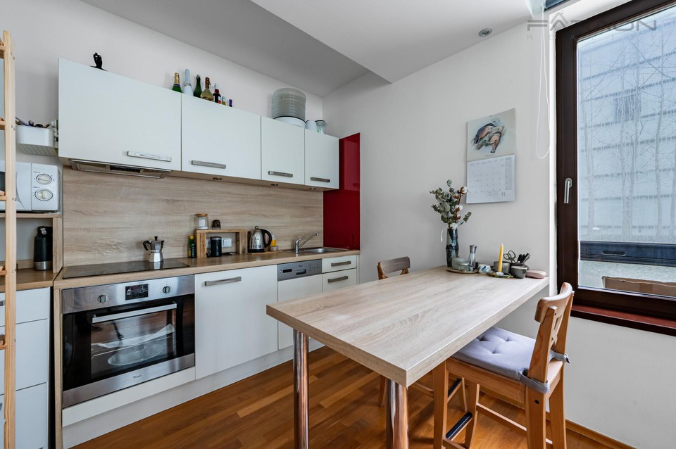 REZERVACE. Pronájem bytu 1+kk (43 m2) umístěného v žádaném rezidenčním projektu Cornlofts Šaldova v blízkosti metra Křižíkova v samém srdci Karlína. Byt se nachází v přízemí novostavby ve vnitrobloku. Možnost využívání přilehlé terasy ve vnitrobloku, která je společná pro celý projekt Cornlofts. Vchod do domu může být jak z ulice Šaldova, tak Pernerova. Dispozice bytu 1+kk zahrnuje otevřený prostor obývacího pokoje s kuchyní, chodba, koupelna se sprchovým koutem a toaletou. Vybavení zahrnuje kompletně zařízenou kuchyňskou linku se všemi spotřebiči, vestavěnou velkou šatní skříň v chodbě. Dům se nachází v žádané lokalitě Karlín, téměř v centru Prahy. V těsné blízkosti se nachází stanice metra Křižíkova (žlutá linka B) a tramvajové zastávky Křižíkova a Urxova. V okolí jsou obchody Billa, Albert, Rossmann, Karlínské náměstí se vzrostlou zelení, mnoho restaurací, kaváren a veškerá občanská vybavenost. Lokalita je ideální pro procházky a sportování podél řeky Vltavy. Dům se nachází blízko parku Kaizlovy sady a krásné Lyčkovo náměstí je vzdáleno pouze 4 minuty pěšky. Zúčtovatelné poplatky 3.500 Kč / měsíc plus převod elektřiny na nového nájemníka (cca. 1. 000 Kč). K nastěhování: 12. 1. 2026
