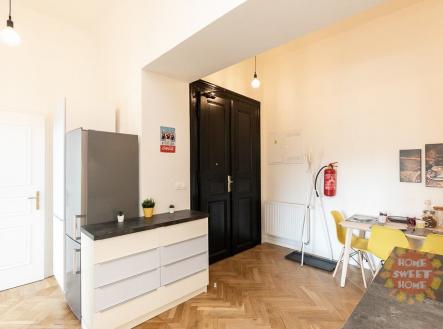 Krásný, zařízený pokoj 11m² se společnou, zařízenou kuchyní s jídelním koutem, koupelny se sprchou a toaletou se nachází v Residenci Kinských ve 2. patře cihlového domu v ulici nám.Kinských, Praha 5. Dům prošel kompletní rekonstrukcí roku 2019. Pokoj i byt je kompletně zařízený, včetně žehličky, prkna a vybavení na úklid. Nachází se ve 4 pokojovém bytě s 2 koupelnami. Byt i pokoj je kompletně zařízený. Společné prostory jsou vybaveny včetně žehličky, úklidových pomůcek a dalších potřeb pro běžný provoz. Samotný uzamykatelný pokoj je vybavený patrem na spaní, pracovním stolem, šatní skříní, přikrývkou a polštářem. Internet a úklid společných prostor (1× týdně) jsou již zahrnuty v ceně nájmu. Nájemníkům je dále k dispozici fitness, prádelna (na mince) a společná terasa. Rezidence se nachází ve velmi oblíbené lokalitě v těsné blízkosti centra města, nedaleko zahrady Kinských a parku Petřín. V okolí je vynikající občanská vybavenost – obchodní centrum Anděl, Cinema City Nový Smíchov, školy, restaurace, bary a mnoho dalšího. Rovněž dopravní dostupnost je výborná: tramvajová zastávka Újezd (200 m), metro Anděl (10 minut chůze) nebo vlakové nádraží Praha–Smíchov (5 zastávek tramvají). K dispozici je více pokojů k pronájmu. Bydlení je vhodné především pro studenty na střednědobý pronájem. Pokoje je dostupný od 12.února 2026.