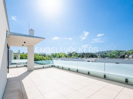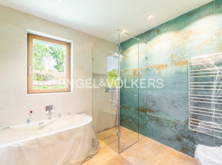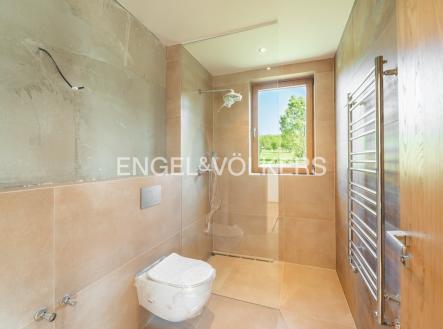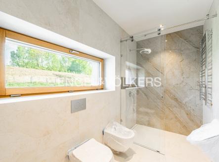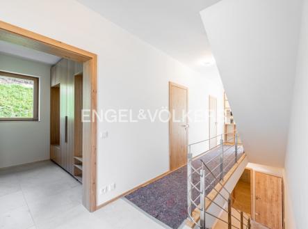 K pronájmu od 1. 11. 2025 je připravena nově dokončená, nezařízená samostatně stojící vila na hranici Prahy 5. Vila disponuje 6 ložnicemi, 4 koupelnami, rozlehlou zahradou, garáží pro dvě auta a prostorným sklepem. Vila se nachází v soukromém udržovaném rezidenčním areálu v těsné blízkosti lesoparku. V přízemí domu je obývací pokoj s plně vybavenou kuchyní a přístupem na zastřešenou terasu, ložnice, vybavená šatna, toaleta a vstupní chodba. První patro nabízí galerii, hlavní ložnici s en-suite koupelnou, dále další tři ložnice a samostatnou koupelnu. Druhé patro nabízí velkou místnost s koupelnou a přístupem na druhou terasu. V přízemí domu je garáž, technická místnost, sklep a velký prostor vhodný například pro posilovnu. V celém domě je klimatizace, dřevěné podlahy, dlažba, elektrické předokenní bezpečnostní rolety, tepelné čerpadlo, centrální vysavač a automatická závlaha na zahradě.