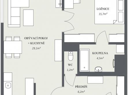 Slunný byt 2+kk s velkou terasou, Praha – Vysočany