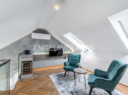 K dlouhodobému pronájmu nabízíme nádherný byt po rekonstrukci v populární lokalitě Holešovic. Jednotka se nachází v posledním 5. patře udržovaného činžovního domu taktéž po rekonstrukci. Byt prošel náročnou kompletní rekonstrukcí a nabízí se kompletně vybavený nábytkem na míru. Vstupní chodba disponuje vestavěnými skříněmi a vede do světlého obývacího pokoje s kuchyňským koutem. Kuchyně je kompletně vybavena spotřebiči značky Miele (včetně kombinované pračky se sušičkou). Obývací pokoj je nádherně světlý díky velkému střešnímu oknu a je propojen s galerií v horním patře. Galerie poskytuje příjemný prostor pro pracovnu a disponuje také vinotékou. V bytě jsou dvě ložnice, z nichž je jedna vybavena designovým nábytkem. K dispozici jsou dvě koupelny, jedna s vanou a druhá se sprchovým koutem. V bytě je nainstalována klimatizace. Další velkou výhodou bytu je jedno parkovací stání ve vnitrobloku domu. Součástí pronájmu je i sklep v podzemním podlaží. Lokalita je jednoduše skvělá - byt se nachází mezi parky Stromovka a Letná, veškerá občanská vybavenost v okolí je samozřejmostí. Kauce je stanovena ve výši 2 měsíčních nájmů. Provize realitní kanceláři činí 1 měsíční nájem + DPH.