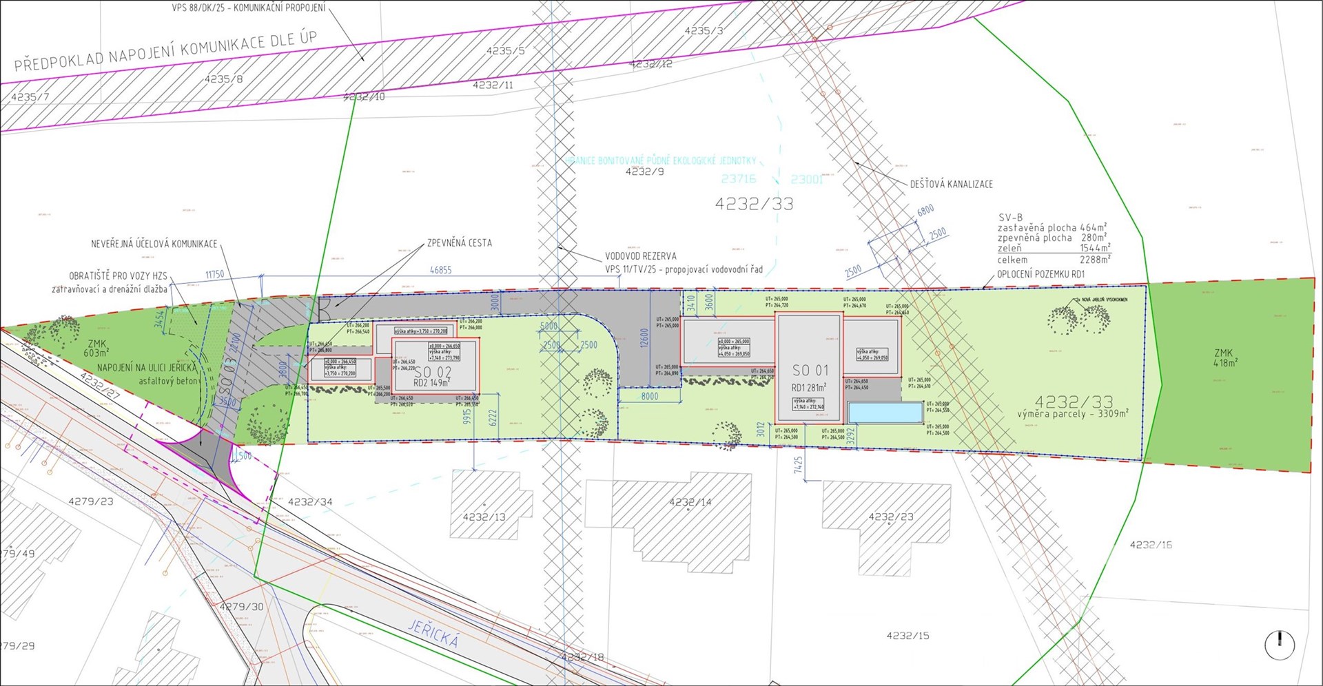 Stavební pozemek s platným stavebním povolením na dva luxusní rodinné domy.