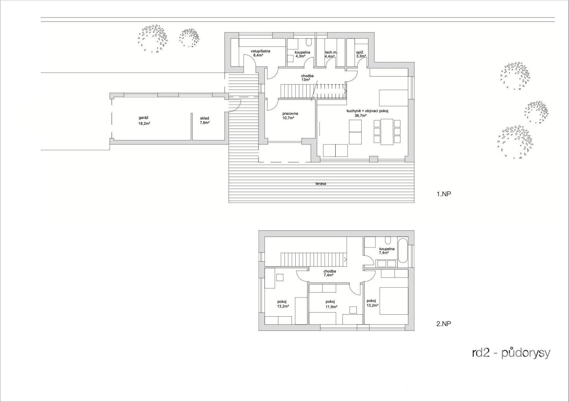 Exkluzivně nabízíme stavební pozemek s platným stavebním povolením na dvě luxusní vily. První o výměře 377 m2, druhá 225 m2. Rozmístění je znázorněno v situaci v grafické části inzerátu. Komplex nabízí unikátní příležitost pro multigenerační bydlení v nejvyšší možné míře komfortu a soukromí. Větší vila nabízí vlastní příjezdovou cestu, dvě garážová stání a venkovní parkování. Dále terasu s bazénem a rozlehlou zahradu. Menší vila nabízí jedno garážové stání a další venkovní parkování. Půdorysy obou vil jsou pouze orientační, dispozice lze pozměnit. Pozemek lze rozdělit a prodat zvlášť odpovídající část pro stavbu jedné z vil. Pro více informací kontaktujte makléře. Horní Počernice jsou velmi prestižní lokalitou pro svoji dostupnost do centra Prahy, přestože jsou na dosah přírodě. Chlubí se veškerou občanskou vybaveností včetně mateřské školy, základní školy a gymnázia. Nemovitost se navíc nachází jen pár minut autem od nákupních center na Černém Mostě. V okolí jsou různá sportoviště, cyklostezky i například golfové hřiště. Konečná cena bez dalších poplatků je 37.498.000 Kč. V případě zájmu, nebo dalších dotazů, neváhejte kontaktovat makléře.