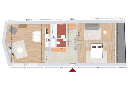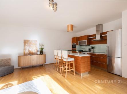 Některá místa mají zvláštní klid. Ten, který necítíte hned, ale o to víc vás obklopí, když se na chvíli zastavíte. Tenhle byt ho má. Nachází se v ulici U Michelského mlýna – jen pár minut od centra, a přesto jakoby v jiném světě. Ráno tu místo ruchu tramvají slyšíte šum listů. Vzduch je jiný – čistší, pomalejší, klidnější. Zatímco město tepe svým tempem, tady se dny odvíjejí jinak. Z terasového posezení vidíte koruny stromů, které se s větrem houpou nad Michlí. Slunce tu mění atmosféru během dne – ráno se světlo rozlévá po podlaze ložnice, odpoledne zalije celý obývací pokoj zlatavým tónem. Byt o velikosti 74 m² má ideální dispozici 3+kk – žádné kompromisy, žádné zbytečnosti. Obývací prostor s kuchyní má rytmus, který dává smysl: plynulý, otevřený, přitom útulný. Dvě samostatné ložnice jsou jako dvě oázy klidu – jedna pro spánek, druhá pro práci, tvorbu, děti nebo hosty. A venku? To je kapitola sama pro sebe. Michle má zvláštní kouzlo – není to klasický ruch velkoměsta, ale opravdová městská čtvrť, kde se dá žít. Pár minut chůze a jste v Bohdaleckém lese, u Hamerského rybníka nebo v parku Jezerka – ideální místa na běh, piknik nebo jen chvíli s knihou. V okolí najdete útulné kavárny, místní bistra, obchody s potravinami i restaurace, kam se budete rádi vracet. Do centra se dostanete během pár minut – tramvají a napojením na metro C, autobusem nebo autem. V docházkové vzdálenosti najdete školku, základní školu, gymnázium, poštu, lékárnu, obchod i fitness centrum – všechno, co dělá každodenní život pohodlným. Dům pochází z roku 2009, k bytu náleží sklep (4 m²), terasa (7 m²) a jedno liftové parkovací stání v přízemí. Tento byt není jen o zdech, dispozicích a metrech čtverečních. Je o rytmu života, který dává smysl. O místě, kam se budete těšit vracet. Zavolejte si o prohlídku. A připravte se na to, že vás ten klid pohltí dřív, než si stihnete zout boty.