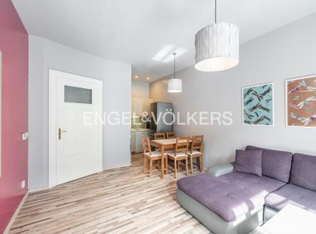 Bytová jednotka s dispozicí 3+kk má vnitřní užitnou plochu 62 m2 a je situována v 3. nadzemním podlaží. Nachází se v historickém činžovním domě, který prošel kompletní rekonstrukcí a nabízí reprezentativní a čisté společné prostory. Komfort bydlení zvyšuje také nový výtah, který vede přímo do pater. Dispozičně je byt prakticky řešený, protože se z haly vchází do jednotlivých místností, které nejsou průchozí. Dispozice nabízí dvě velkorysé ložnice, dvě koupelny a obývací pokoj s kuchyňskou linkou vybavenou spotřebiči. Díky velkým špaletovým oknům a vyššímu podlaží jsou pokoje příjemně světlé. Přidanou hodnotou jsou také repliky původních interiérových dveří a masivní dvoukřídlé vstupní dveře do bytu. Vytápění bytu zajišťuje plynový kotel.