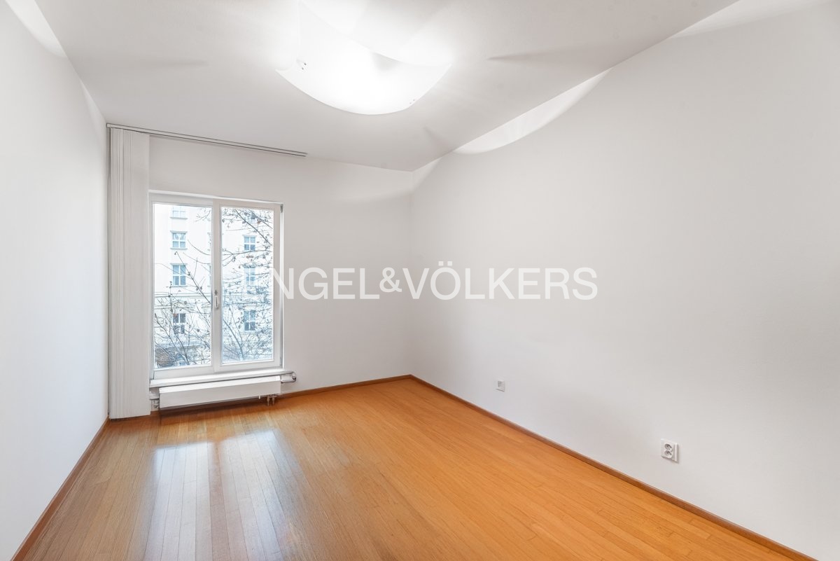 Exkluzivní byt s dispozicí 4+kk a podlahovou plochou 130 m², umístěný ve 3. podlaží prestižní rezidence na Senovážném náměstí. Rezidence nabízí recepci, bezpečný vstup, parkování a klidné vnitřní zázemí v samotném centru Prahy. Byt vyniká vysokým standardem provedení - dřevěnými parketami, kvalitními materiály a důrazem na detail. Dispozice zahrnuje prostorný obývací pokoj s kuchyňským koutem, tři samostatné ložnice a dostatek úložných prostor. K pohodlí přispívají tři toalety a dvě en-suite koupelny přístupné přímo z ložnic. Díky velkým oknům je byt mimořádně světlý a nabízí příjemné výhledy do okolí i do vnitrobloku rezidence. Celková atmosféra bytu kombinuje moderní městské bydlení s maximálním komfortem a soukromím. Byt je ideální pro náročné klienty hledající vysokou úroveň bydlení v prestižní pražské lokalitě. Provize hrazená nájemcem činí 1 měsíční nájem + DPH.