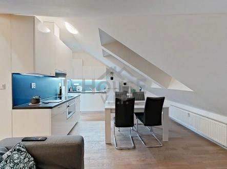 Hledáte světlý, prostorný a stylový byt s charakterem? Nabízíme k prodeji podkrovní byt 1+kk o velikosti 58 m², orientovaný na sever a západ, který zaujme vzdušností, přirozeným denním světlem a promyšlenou dispozicí. Interiér je rozdělen na obytnou část, kuchyň s jídelnou, klidovou zónu a prostornou vstupní chodbu. Poslední podlaží poskytuje klid, soukromí a výhledy nad okolní zástavbu, byt lze navíc snadno upravit na 2+kk. Byt se nachází ve zrekonstruované prvorepublikové vile, která si zachovala elegantní historický charakter kombinovaný s moderním komfortem. Vila nabízí maximální soukromí a pohodlí. Lokalita Prahy 6 – Dejvice patří k nejprestižnějším rezidenčním čtvrtím. Klidné ulice, parky a množství zeleně vytvářejí ideální prostředí pro odpočinek i aktivní život. V docházkové vzdálenosti najdete kavárny, restaurace, obchody i farmářské trhy, a centrum je rychle dostupné metrem nebo tramvají. Byt je momentálně pronajat, avšak novému majiteli poskytuje možnost využít jej podle svých potřeb – pro vlastní pohodlné bydlení, druhou rezidenci nebo investici. I když může nabídnout okamžitý výnos, byt není určen výhradně pro investory, a svou dispozicí, světlostí a podkrovním charakterem nabízí komfortní městské bydlení. Doporučujeme osobní prohlídku, abyste mohli naplno pocítit atmosféru bytu, jeho světlo, prostornost a jedinečný podkrovní charakter. Osobní návštěva vám nejlépe ukáže, jak pohodlně a příjemně se zde dá bydlet.