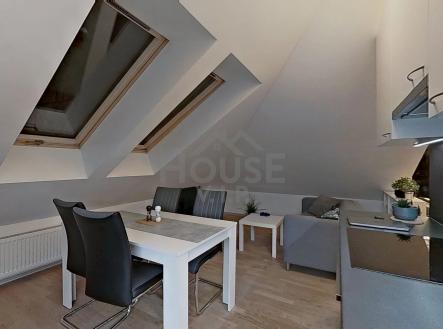 Světlý podkrovní byt 1+kk v elegantní prvorepublikové vile – Dejvice
