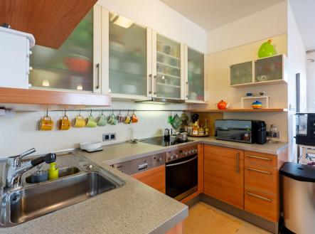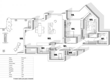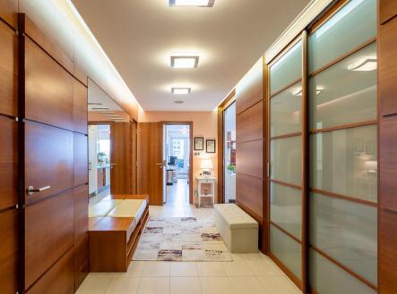 Nabízíme Vám prostorný vzdušný byt 3+kk se 2 terasami, nádherným výhledem a garážovým stáním. Byt se nachází rezidenčním domě v Hyacintové ul. v Praze 10 - Záběhlicích. Lokalita je klidná, s výbornou dopravní dostupností - autobusová zastávka je jen cca. 2 minuty chůze od domu a během několika málo minut se pohodlně dostane ke stanici metra A Strašnická. V okolí se nachází obchody, supermarkety, poliklinika. Blízkost mateřské a základní školy je samozřejmostí. Za většími nákupy můžete vyrazit do nedalekého obchodního centra Vivo Hostivař. Milovníci procházek a aktivního odpočinku jistě uvítají blízkost klidové zóny podél Botiče, Záběhlického zámku a rybníku Hamr, kde se také nachází různá sportoviště. Byt je situován v 5. NP, o Vaše pohodlí a bezpečnost se stará 24 hodinová recepční služba s ostrahou nacházející se v přízemí domu. Byt má celkovou plochu 108 m2, náleží k němu sklep 2 m2 a 2 terasy o plochách 38 m2 a 7 m2. Byt je velmi prostorný a světlý. Při vstupu Vás jistě zaujme prostorná hala, ze které je samostatný přístup do všech místností v bytě. Rozlehlý obývací pokoj s kuchyní má celkem 49 m2, naleznete v něm dostatek prostoru pro příjemné rodinné stolování či posezení s přáteli. Z obývacího pokoje je přístup na jihozápadně orientovanou terasu 38 m2. Tento prostor vám rozšíří vaše pohodlí a komfort v teplejším období, jistě zde najdou svůj kout nejen milovníci sluníčka, ale můžete terasu využít také k relaxaci po náročném dni nebo grilování. Ve druhé části bytu se nachází 2 samostatné pokoje, z každého je přístup na menší terasu. Větší pokoj má vlastní šatnu a koupelnu. Byt je ve velmi dobrém stavu, při jeho realizaci byly použity nadstandardní, kvalitní materiály a celý byt působí velmi příjemným, útulným dojmem. V celém bytě se nachází vestavěné skříně na míru vyhotovené z třešňového dřeva v kombinaci s mléčným sklem, stejně jako vnitřní dveře v bytě. Kuchyňská linka je vybavena veškerými spotřebiči. Na podlaze je položena dlažba, bambusová podlaha, v ložnici koberec. V jedné koupelně se nachází vířivá vana, ve druhé sprchový kout. K bytu náleží parkovací stání umístěné v suterénu domu. Byt bude k dispozici po dohodě. Neváhejte a domluvte si prohlídku tohoto jedinečného bytu ještě dnes.