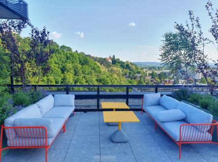 Unikátní 1+kk 27m2 + terasa/zahrádka 23m2 + sklep 2m2 + bazén v domě, P4 novostavba Ahoj Vanguard