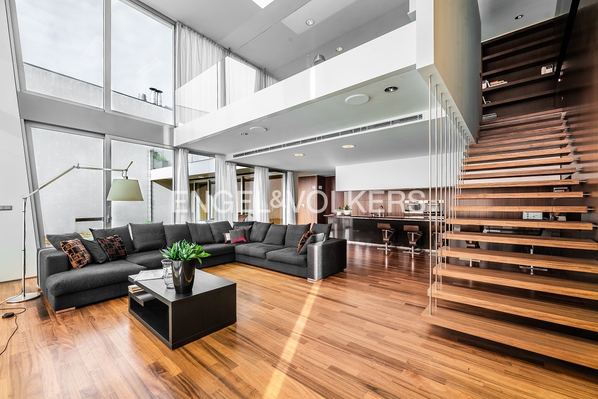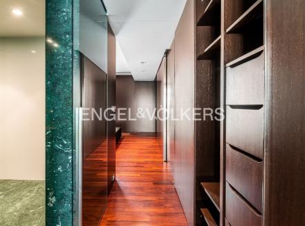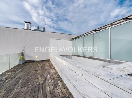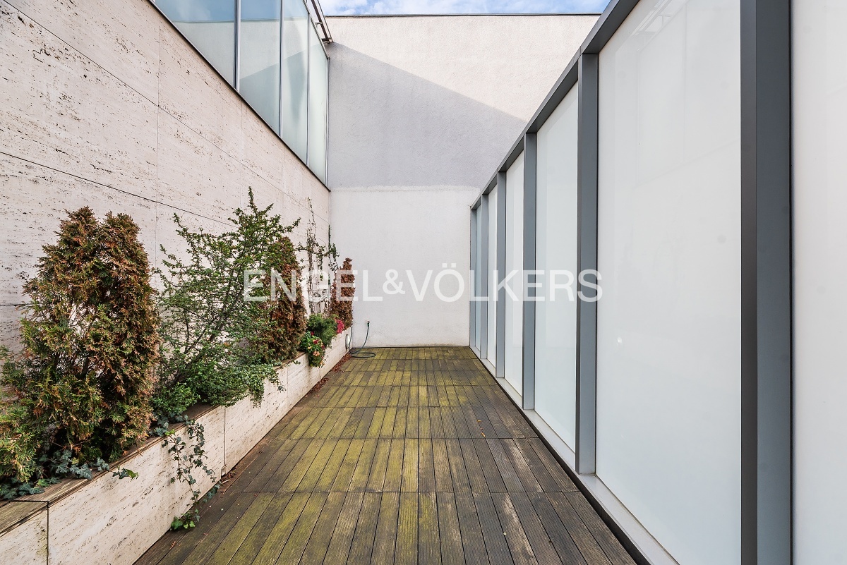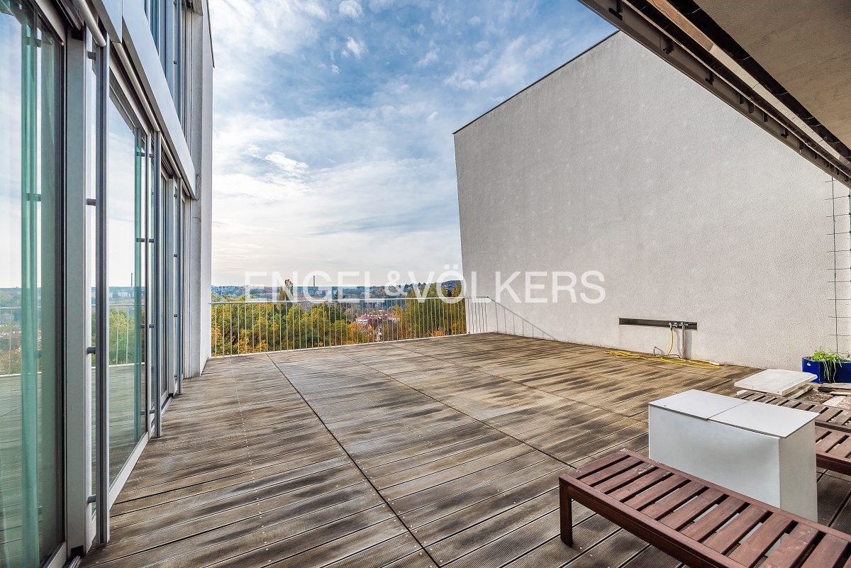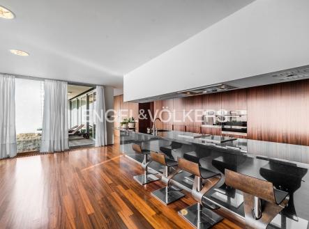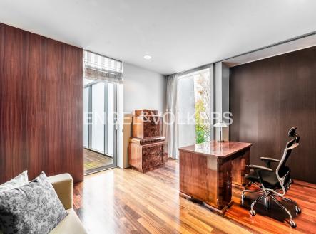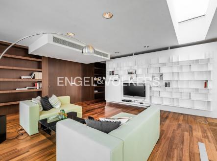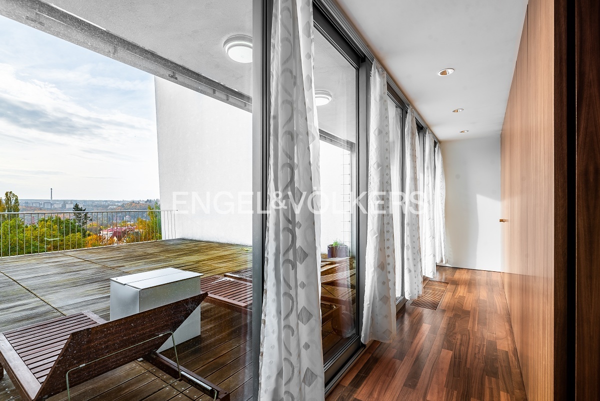 K dispozici od 1.3.2024, byt je momentálně pronajatý. Moderní rezidence XY Hřebenky byla zasazena do jižního svahu Smíchovských Hřebenek Díky návrhu architekta Radana Hubičky a provedení developera FCC se kloubí nadčasový design s vysokými standardy, naprostým klidem a zároveň bezpečím. Celý byt je navržen architektem Hubičkou, jeho design podtrhuje klasický prvorepublikový styl. V šestém podlaží se rozléhá otevřený obývací pokoj s jídelnou a kuchyňskou linkou kompletně vybavenou spotřebiči značky Miele. Z obývacího pokoje je vstup na největší terasu. V tomto patře je také oddělený samostatný byt, který má ložnici, koupelnu, šatnu, obývací pokoj a soukromou terasu. Po schodech o patro výše se ocitneme v nádherné světlé pracovně a galerii s knihovnou. Dvě symetrické ložnice se samostatnými vstupy poskytují naprosté soukromí. Každá ložnice má velkou koupelnu. Z galerie je také vstup na jednu ze tří teras. Horní terasa disponuje bazénem s protiproudem. Celý byt lemují na míru dělané vestavěné skříně a knihovny korespondující s designem bytu a nádhernými dřevěnými podlahami. V bytě je topení řešené podlahovými konvektory a kapilárovým vytápěním v koupelnách a naopak chlazením ve stropech. Pro příjemnou atmosféru je v obývacím pokoji i krb na dřevo. Výhodou projektu je nejen blízkost mezinárodních škol (Deutsche Schule Prag, Lycee Francais či International School of Prague) a letiště, ale i rekreační zázemí obsahující bazén, saunu, fitness, dětské hřiště a dokonce i squashový kurt. K bytu náleží 2 sklepní kóje a 2 garážová stání.