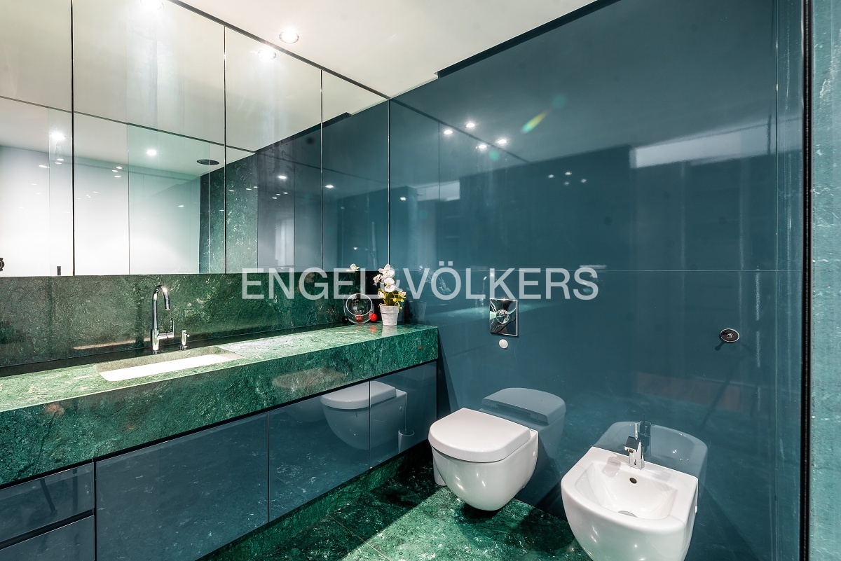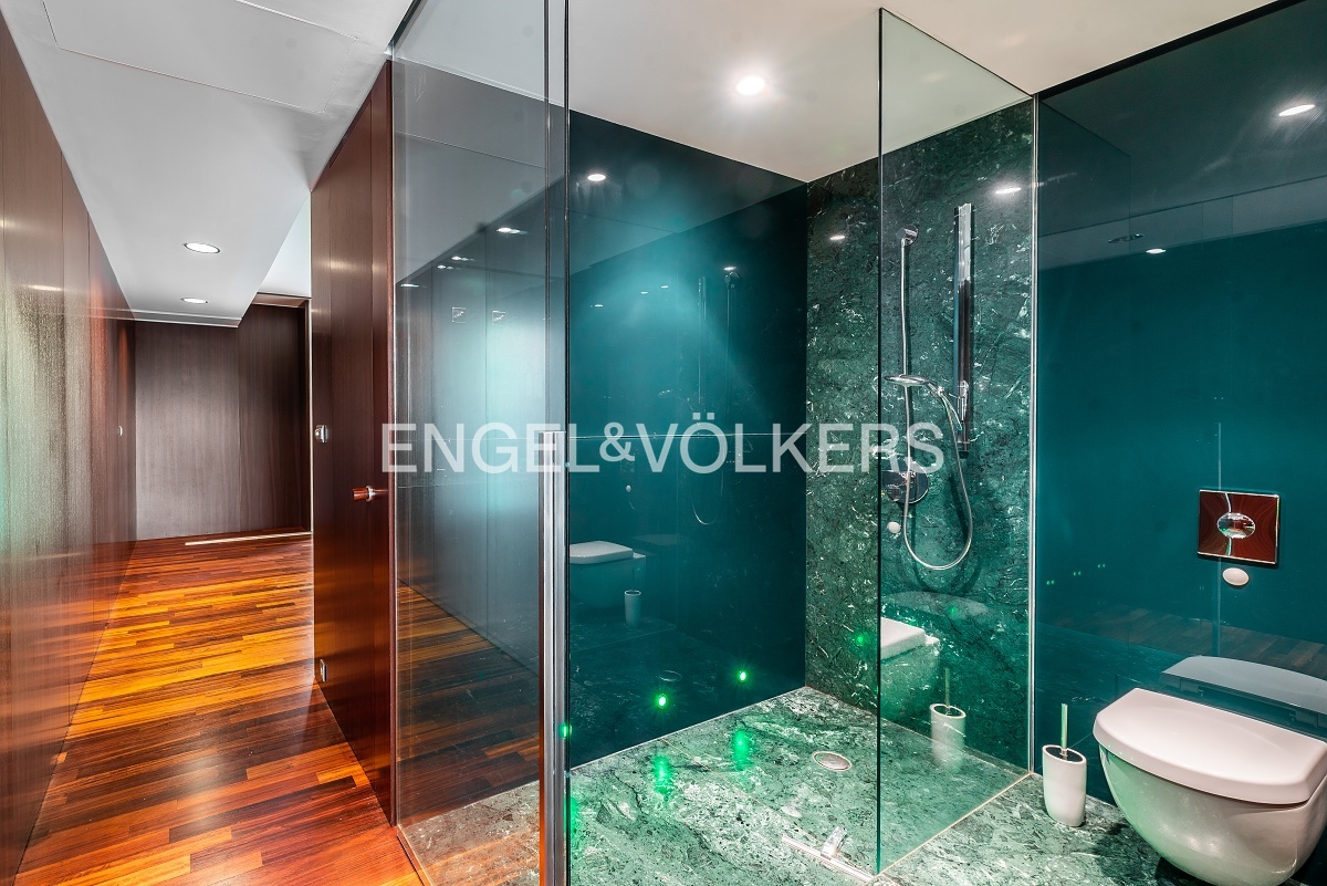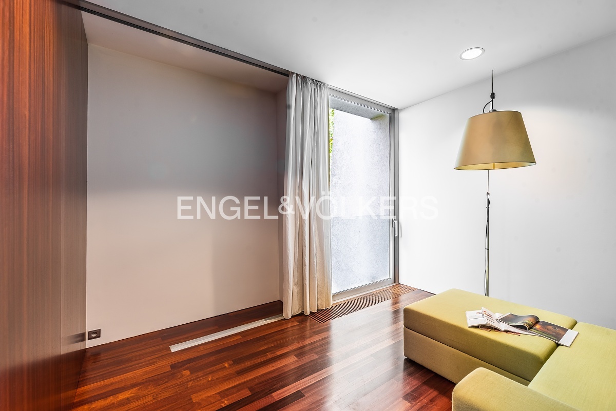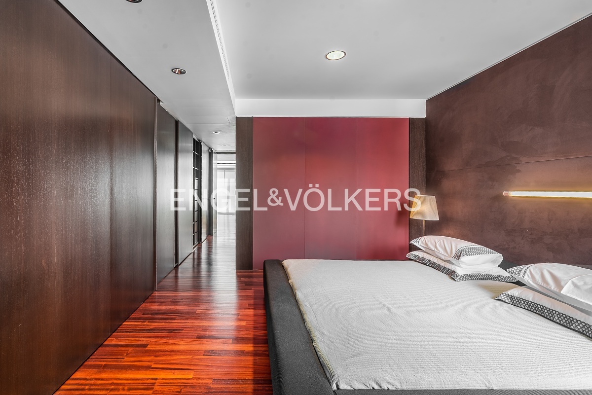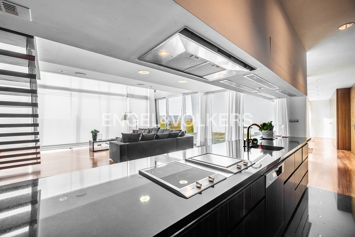 K dispozici od 1.3.2024, byt je momentálně pronajatý. Moderní rezidence XY Hřebenky byla zasazena do jižního svahu Smíchovských Hřebenek Díky návrhu architekta Radana Hubičky a provedení developera FCC se kloubí nadčasový design s vysokými standardy, naprostým klidem a zároveň bezpečím. Celý byt je navržen architektem Hubičkou, jeho design podtrhuje klasický prvorepublikový styl. V šestém podlaží se rozléhá otevřený obývací pokoj s jídelnou a kuchyňskou linkou kompletně vybavenou spotřebiči značky Miele. Z obývacího pokoje je vstup na největší terasu. V tomto patře je také oddělený samostatný byt, který má ložnici, koupelnu, šatnu, obývací pokoj a soukromou terasu. Po schodech o patro výše se ocitneme v nádherné světlé pracovně a galerii s knihovnou. Dvě symetrické ložnice se samostatnými vstupy poskytují naprosté soukromí. Každá ložnice má velkou koupelnu. Z galerie je také vstup na jednu ze tří teras. Horní terasa disponuje bazénem s protiproudem. Celý byt lemují na míru dělané vestavěné skříně a knihovny korespondující s designem bytu a nádhernými dřevěnými podlahami. V bytě je topení řešené podlahovými konvektory a kapilárovým vytápěním v koupelnách a naopak chlazením ve stropech. Pro příjemnou atmosféru je v obývacím pokoji i krb na dřevo. Výhodou projektu je nejen blízkost mezinárodních škol (Deutsche Schule Prag, Lycee Francais či International School of Prague) a letiště, ale i rekreační zázemí obsahující bazén, saunu, fitness, dětské hřiště a dokonce i squashový kurt. K bytu náleží 2 sklepní kóje a 2 garážová stání.