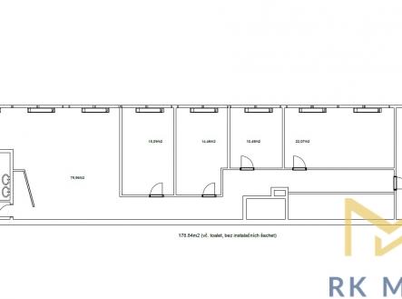 K pronájmu nabízíme velmi vzdušné moderní kancelářské prostory o velikosti 179 m2, situované v 5. patře (6. nadzemním podlaží) Slovanského domu v ulici Na Příkopě, v oblasti Prahy 1 - Nové Město. Prostor umožňuje přizpůsobit interiér potřebám a stylu Vaší firmy – od otevřených kanceláří ve stylu open space, přes menší samostatné místnosti, až po jejich kombinaci. Kancelář disponuje dvěma toaletami a praktickou menší úložnou místností. Dle půdorysu ve fotodokumentaci je možné uspořádat například čtyři zasedací místnosti, jednu větší open-space kancelář a také kuchyňku. Navzdory rušné lokalitě nabízí Slovanský dům klidné pracovní prostředí s moderním zázemím a výhledem do jedinečné zahrady se vzrostlými platany a sochou od renomovaného umělce Federica Díaze. Možnost pronajmout parkovací stání za extra příplatek 350,- EUR/měsíc bez DPH 21%, celkem s DPH 21% = 423,- EUR/měsíc. Lokalita se vyznačuje vynikající dopravní dostupností – v bezprostřední blízkosti se nacházejí stanice metra Můstek (linka A/B) a Náměstí Republiky (linka B), stejně jako několik tramvajových linek v docházkové vzdálenosti. Strategická poloha v samotném centru Prahy zároveň umožňuje snadné napojení na hlavní pražské dopravní tepny a rychlý přístup k nájezdům na D1, D5, D8 i na Pražský městský okruh. Měsíční nájemné činí 22,50,- EUR/m2/měsíc bez DPH = cca. 4.027,-EUR/měsíc bez DPH, celkem s DPH 21% = 4.873,- EUR/měsíc, poplatky 170,- Kč/m2/měsíc = cca. 30.430,- Kč/měsíc bez DPH, celkem s DPH 21% = 36.820,- Kč/měsíc. Požadovaná jistota (kauce) ve výši tří měsíčních nájmů včetně servisních poplatků. Třída energetické náročnosti budovy je dle vyhlášky 78/2013 Sb. klasifikována G.