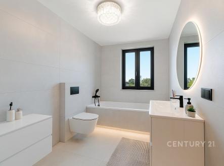 Hledáte ideální kombinaci klidného i aktivního života zároveň? Možnost blízkého sportovního vyžití a obklopeni přírodou? Výbornou dopravní dostupností do centra velkoměsta s napojením na D1? Máme pro vás řešení. V jihovýchodní okrajové části Prahy, v lukrativní lokalitě Újezdu u Průhonic, vyrostla novostavba rodinného domu se dvěma bytovými jednotkami a vlastní zahradou. Vaše budoucí bydlení je navrženo tak, aby splňovalo současné požadavky na komfort. Dispozice jednotky je 5+KK o celkové podlahové ploše 157 m² a se rozkládá se ve dvou nadzemních podlažích. Součástí domu je vlastní zahrada a parkovací stání. Nemovitost je napojena na elektřinu, vodu a kanalizaci. Kolaudace proběhla v říjnu 2025 a dům je nyní ve fázi 'whitewall', tedy máte možnost vlastní volby účelu místností konfigurace těchto prvků je nyní na vás. Případně vám developer dům dodělá 'na klíč' za 10 % ceny. Více informací vám poskytne makléř. Nadstandard a úspora energií Kromě promyšlené dispozice se můžete těšit na celou řadu moderních prvků. Vytápění a ohřev vody zajišťuje tepelné čerpadlo v kombinaci s teplovodním podlahovým topením, což spolu s rekuperací tepla zaručuje nízké provozní náklady. Nemovitost spadá do energetické třídy B, tedy do kategorie velmi úsporných budov, dalšímu upgradu pomůže i příprava na fotovoltaiku. Projekt počítá s nadstandardním vybavením, jako jsou velkoformátové obklady, značkové sanitární předměty, elektrické žaluzie, zabezpečovací systémy a příprava pro systém smarthome a krb. Lokalita, co vám vezme dech Dům se nachází v klidné rezidenční čtvrti s dostatkem zeleně a širokou občanskou vybaveností v docházkové vzdálenosti (sportoviště na fotbal a tenis, škola, školka, restaurace, kavárna a obchody). Další rozšířená vybavenost, včetně nákupních center, je dostupná v sousedních Čestlicích, Průhonicích a Chodově, kam se autem dostanete za pouhých 10 minut. Pro milovníky přírody, sportu (např. běhu nebo joggingu a cyklistiky) je okolí doslova rájem (Milíčovský les, Průhonický park a dendrologická zahrada), nedaleko jsou 3 rybníky a navazující plochy polí, luk a lesů. Dopravní dostupnost do centra je vynikající, zastávka MHD je pouhých 170 metrů od domu a rychlé napojení na dálnici D1 je ve dvou variantách nájezdů. Jak si svůj sen splnit? V současné fázi výstavby, s 90% dokončeností, vám nabízíme dvě možnosti, jak se stát majitelem této unikátní nemovitosti: A./ Kdy si sami dokončíte interiér dle svých představ a získáte tak bydlení za nejnižší cenu, nebo B./ budete chtít dokončení od developera 'na klíč'. Bližší informace o ceně vám podá makléř. Nenechte si ujít tuto výjimečnou příležitost a kontaktujte nás pro více informací. Některé fotografie jsou pouze vizuálním návrhem.