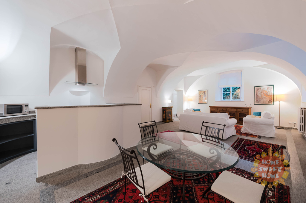 Nabízíme k pronájmu krásný prostorný byt 2+kk v zrekonstruovaného historického bytového domu s výtahem v ulici Vlašská na Malé Straně, Praha 1. Byt je situován v přízemí udržované rezidence s tichým a malebným zeleným nádvořím s fontánami. Nabízí 92 m² obytné plochy ve dvou místnostech s původními gotickými oblouky.Byt dispozice rozkládací pohovkou, kuchynským koutem, (sklokeramická varná deska, mikrovlnná trouba, lednice, mrazák a myčka), a obývacím pokojem. Dále je zde ložnice o velikosti 17 m² s šatnou a prostornou koupelnou vybavenou hlubokou mozaikovou vanou o rozměrech 160 × 160 cm, druhá koupelna (velký sprchový kout, umyvadlo, toaleta a bidet) a komora. Jedná se o atraktivní, často žádanou lokalitu. Klidná ulice. Petřínské sady se nacházejí jen pár kroků od domu. Kvalitní občanská vybavenost v okolí. Restaurace nebo nákupní příležitosti všude v okolí. Snadná dopravní dostupnost do všech částí Prahy. Zastávka tram se nachází jen pár minut chůze od domu. Nelze Airbnb, krátkodobé pod pronájmy či spolubydlení. Pro více informací či prohlídku kontaktujte makléře.