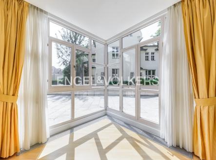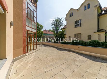 Částečně zařízený velkometrážní byt 5+kk s terasou, balkonem a garážovým stáním na prestižní adrese v klidné části pražského Bubenče. Velikost bytu je 180 m2 a je situován ve zvýšeném přízemí. Byt se skládá ze: - vstupní místnosti s šatnou a úložnými prostory - prostorného obývacího pokoje s kuchyňským koutem se všemi spotřebiči včetně myčky, lednice a pračky - hlavní ložnice s vestavěnými skříněmi, postelí a en suite koupelnou, druhá ložnice s vestavěnými skříněmi, velkého pokoje a dětského pokoje/pracovny - celkem tří koupelen (s vanou, sprchou, toaletami a bidety) - balkonu a terasy se vstupem z obývacího pokoje V bytě naleznete soukromí a klid v kombinaci s prostornými pokoji a úložnými prostory. K jednotce náleží 1 garážové stání. Poplatky: Vyúčtovatelné domovní poplatky 12 000 Kč včetně dodávky plynu a elektřiny. Kauce stanovena ve výši 2 měsíčních nájmů. Provize za zprostředkování činí 1 měsíční nájem + DPH.