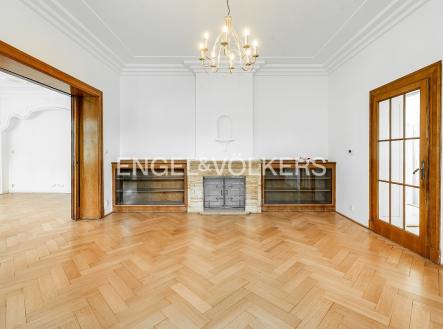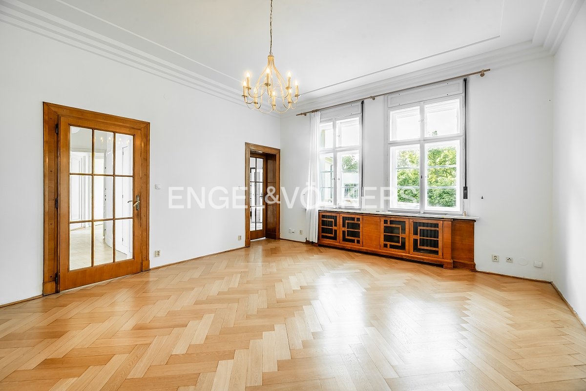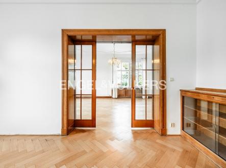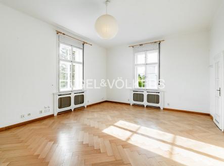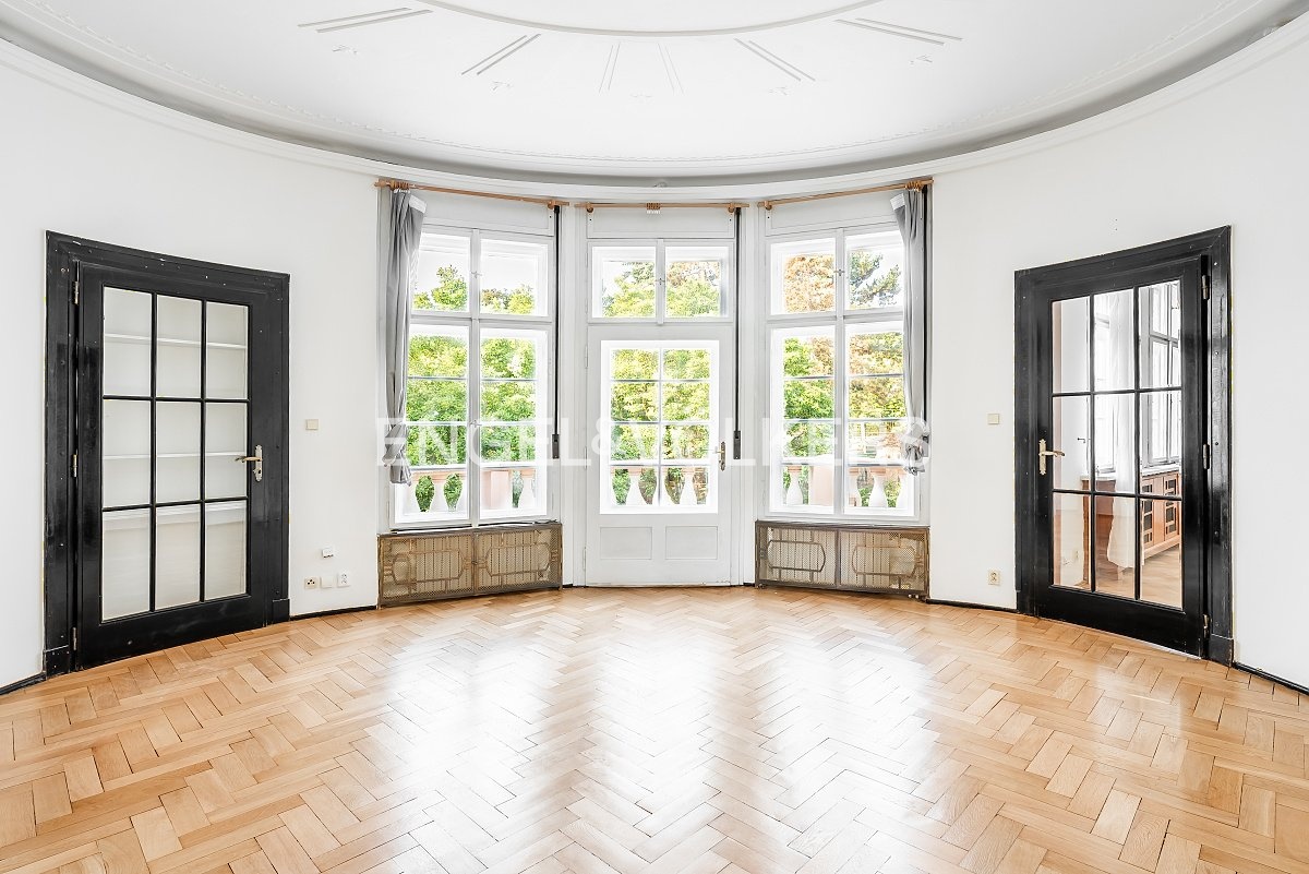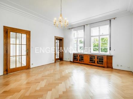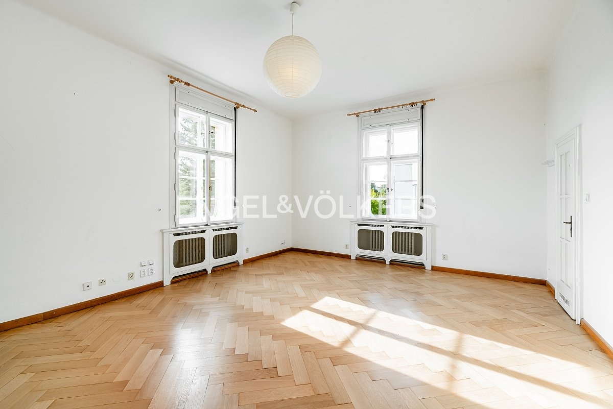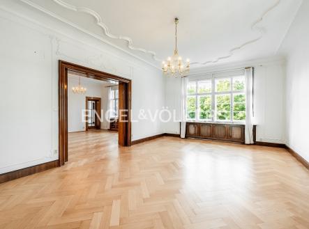 Velkorysý a reprezentativní byt s dispozicí 5+1 se čtyřmi ložnicemi a dvěma samostatnými koupelnami se nachází v kompletně zrenovované reprezentativní novobarokní vile v jedné z nejprestižnějších částí Prahy 6. Srdcem bytu je elegantní oválná společenská místnost se vstupem na majestátní terasu s výhledem do zahrady, kterou je možné využívat; dále je k dispozici prostorný formální obývací pokoj a jídelna, plně vybavená kuchyň, oddělená komora, toaleta pro hosty, prádelna. Byt není vybaven nábytkem. Elektrická energie a plyn se převádí na nájemce.