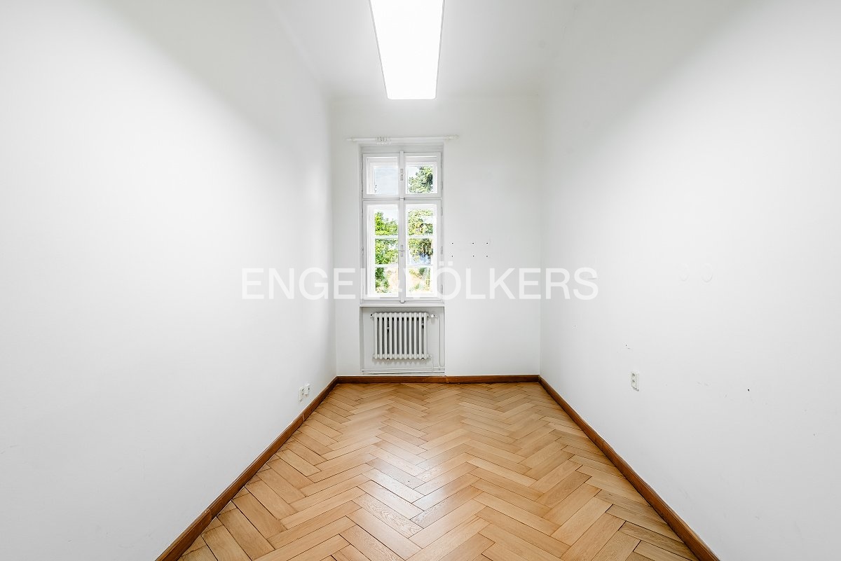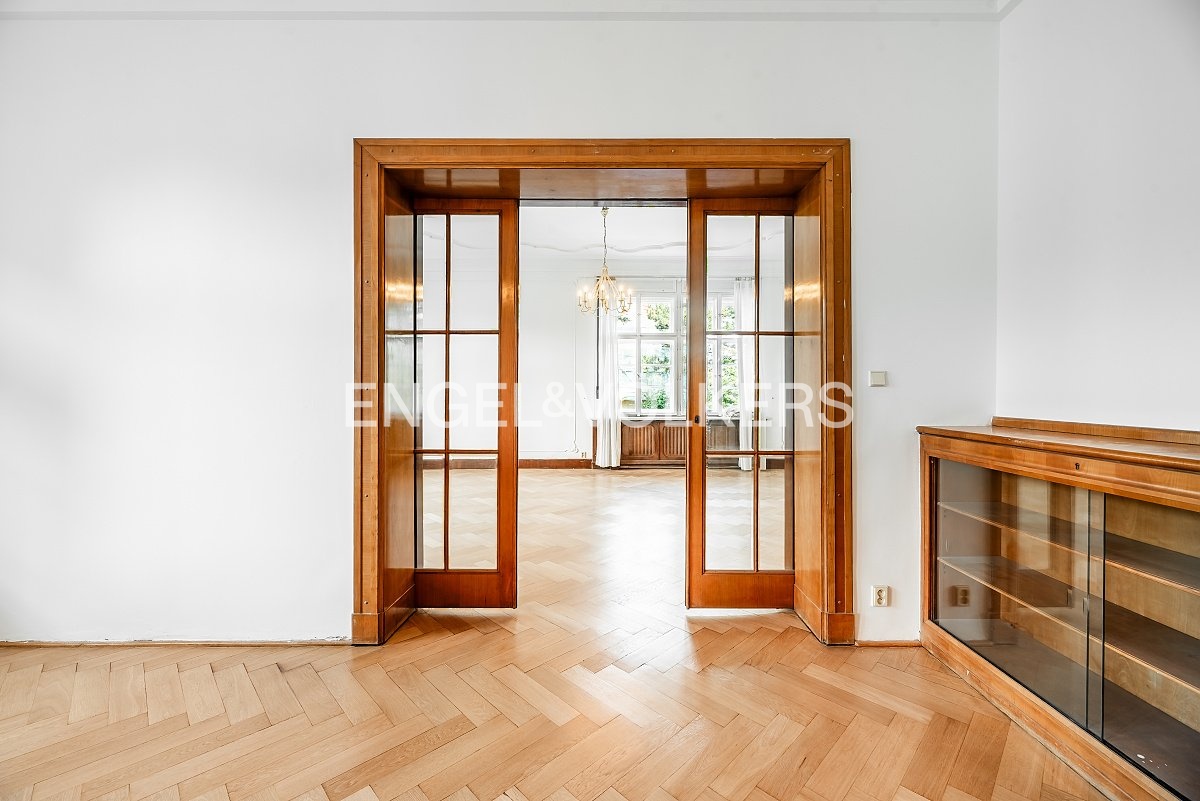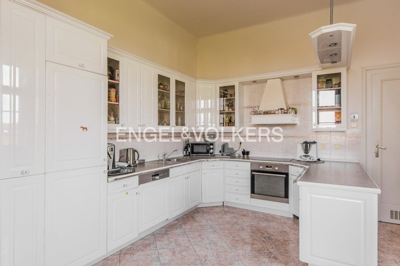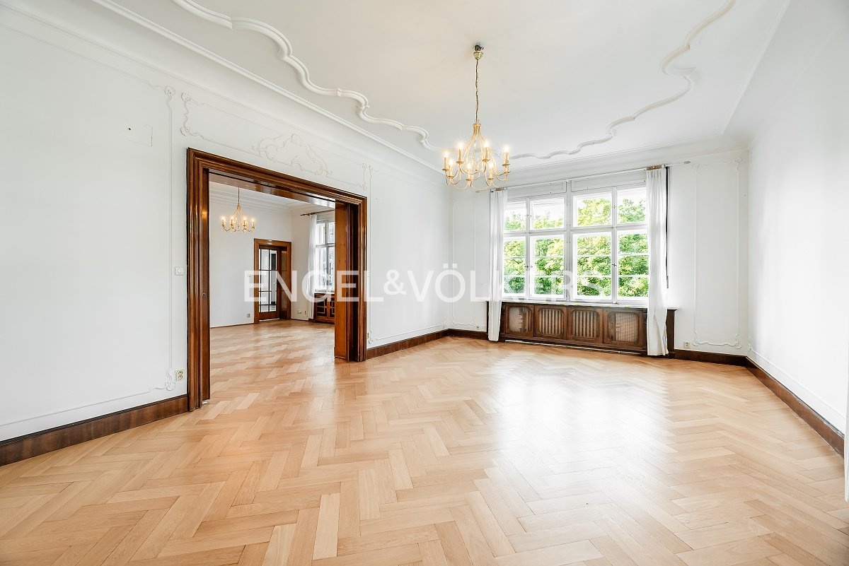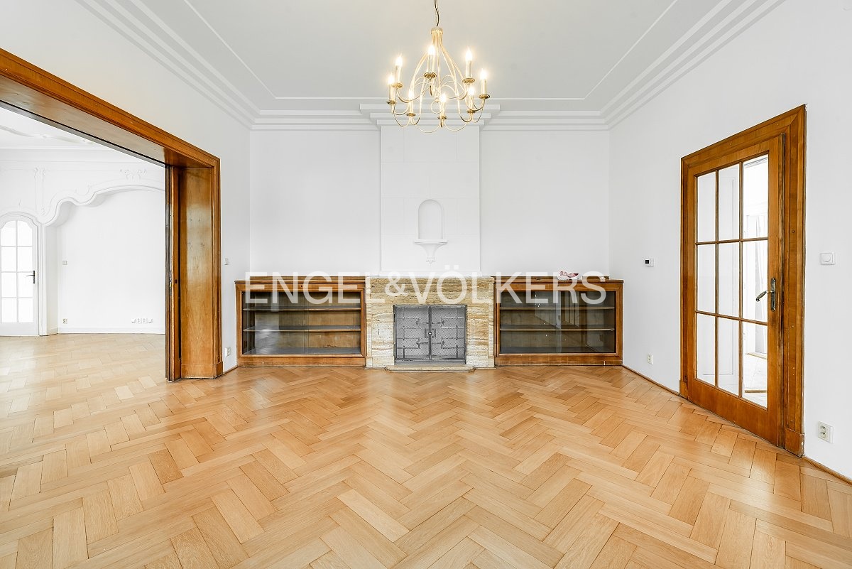Velkorysý a reprezentativní byt s dispozicí 5+1 se čtyřmi ložnicemi a dvěma samostatnými koupelnami se nachází v kompletně zrenovované reprezentativní novobarokní vile v jedné z nejprestižnějších částí Prahy 6. Srdcem bytu je elegantní oválná společenská místnost se vstupem na majestátní terasu s výhledem do zahrady, kterou je možné využívat; dále je k dispozici prostorný formální obývací pokoj a jídelna, plně vybavená kuchyň, oddělená komora, toaleta pro hosty, prádelna. Byt není vybaven nábytkem. Elektrická energie a plyn se převádí na nájemce.