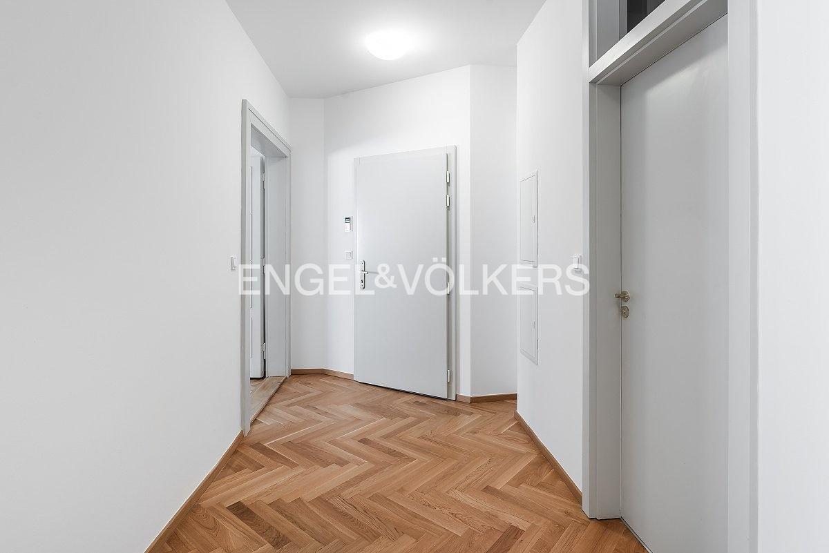 Výborně řešený byt 2+kk v kompletně zrekonstruovaném domě přímo na Vinohradech. Rekonstrukce, včetně nových rozvodů, výtahu a fasády, zachovala veškeré původní secesní dekorační a architektonické prvky. Byt se nachází v 5. nadzemním podlaží a jeho srdcem je prostorný obývací pokoj, který je díky velkým oknům zalitý světlem. Obývací pokoj je propojený s kuchyní, která je kompletně zařízená veškerými spotřebiči. Kuchyň je dle přání možné rozdělit interiérovou příčkou a vytvořit tak další pokoj. Ložnice bytu je velmi vhodně orientovaná do tiché ulice. Byt disponuje koupelnou s vanou a technickou místností. Úložný prostor poskytují vestavěné skříně. Skvělá lokalita, která je jako stvořená pro procházky Riegrovými sady, nabízí fantastickou dopravní dostupnost a nespočetné množství kulturních a volnočasových aktivit.