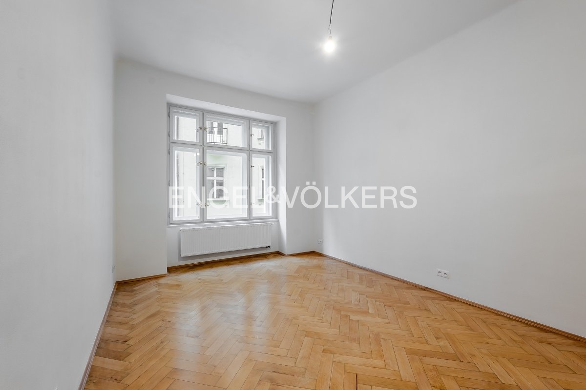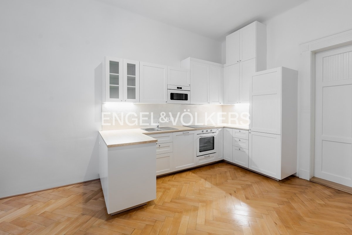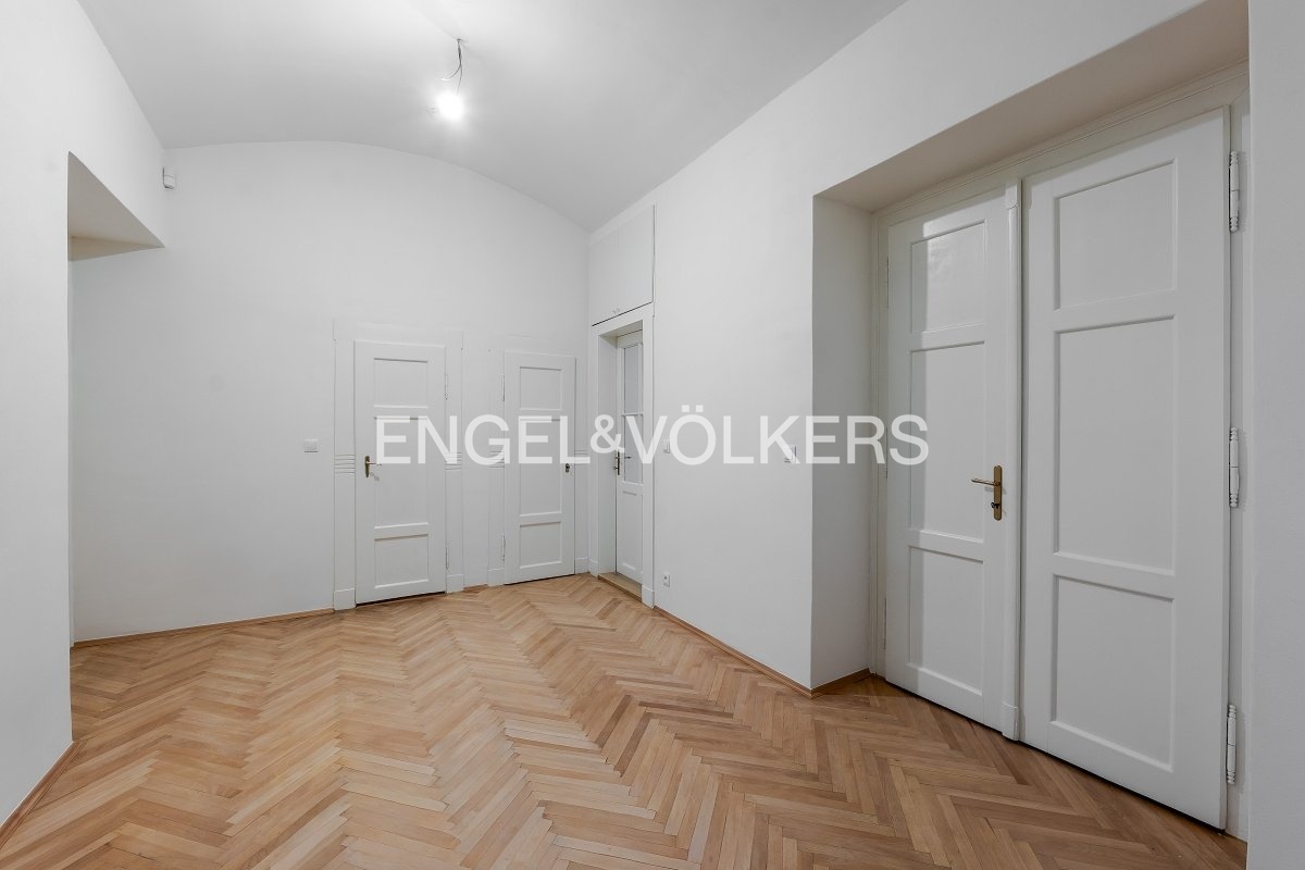 K pronájmu nabízíme byt po kompletní rekonstrukci s dispozicí 4+kk a celkovou plochou 104,5 m² připravený pro prvního nájemce. Byt je situován ve zvýšeném přízemí (1. NP), přičemž úroveň oken odpovídá standardnímu 2. nadzemnímu podlaží. Dispozičně byt nabízí tři samostatné ložnice a kuchyni s menší obývací zónou. Dvě ložnice jsou orientované do klidného vnitrobloku, jedna z ložnic disponuje balkonem. Prostorná vstupní hala poskytuje přímý vstup do dvou ložnic a obývací části, třetí ložnice je přístupná z obývacího pokoje. Koupelna je vybavena sprchovým koutem, toaleta je oddělená. Byt je vybaven zcela novými okny s izolačním dvojsklem, která zajišťují výbornou tepelnou i zvukovou izolaci a maximální klid. K bytu náleží sklepní kóje. Velkou předností je výjimečná lokalita - jen pár kroků od Mánesa, s tramvajovými zastávkami v bezprostřední blízkosti domu a výbornou dostupností městské hromadné dopravy. Stanice metra Karlovo Náměstí (linka B) je v docházkové vzdálenosti. Lokalita zároveň nabízí kompletní občanskou vybavenost včetně obchodů, restaurací, kaváren, lékáren i dalších služeb. Měsíční poplatky činí 1 000 Kč / osoba + převod energií na nájemce. Byt je k dispozici ihned. Pro více informací nebo domluvení prohlídky mne neváhejte kontaktovat.