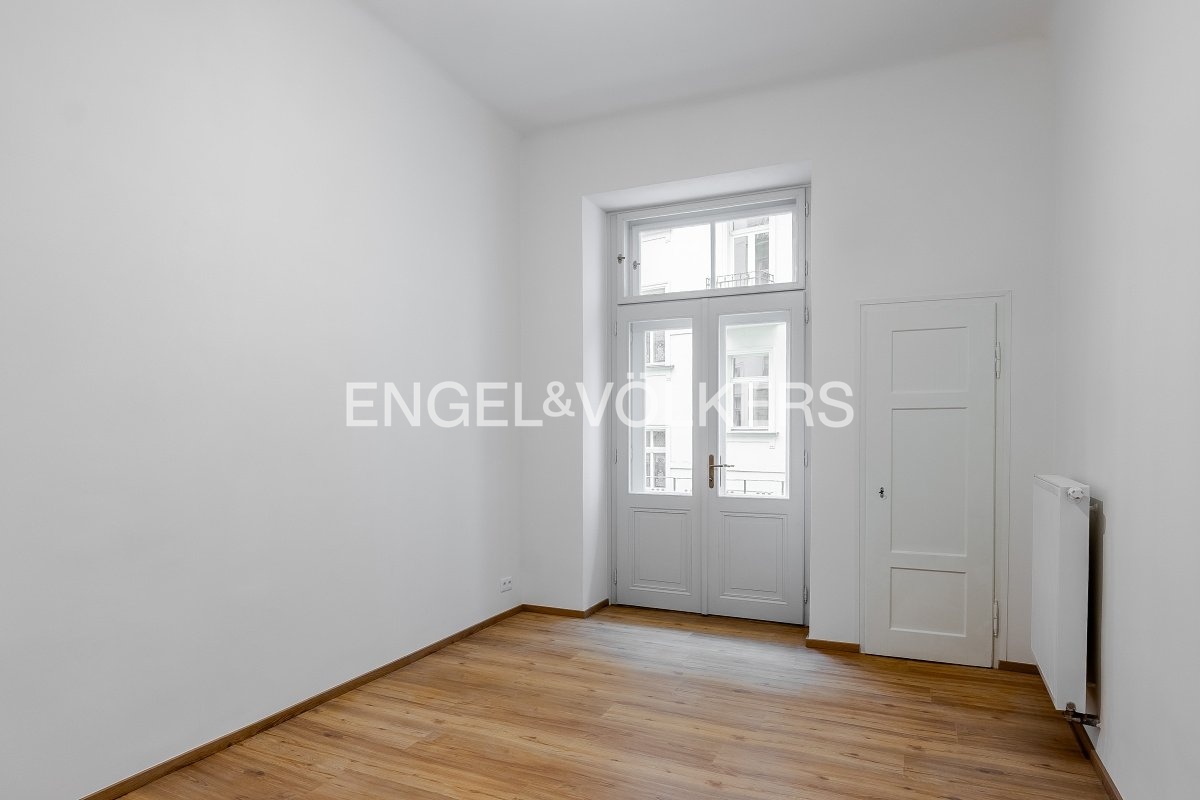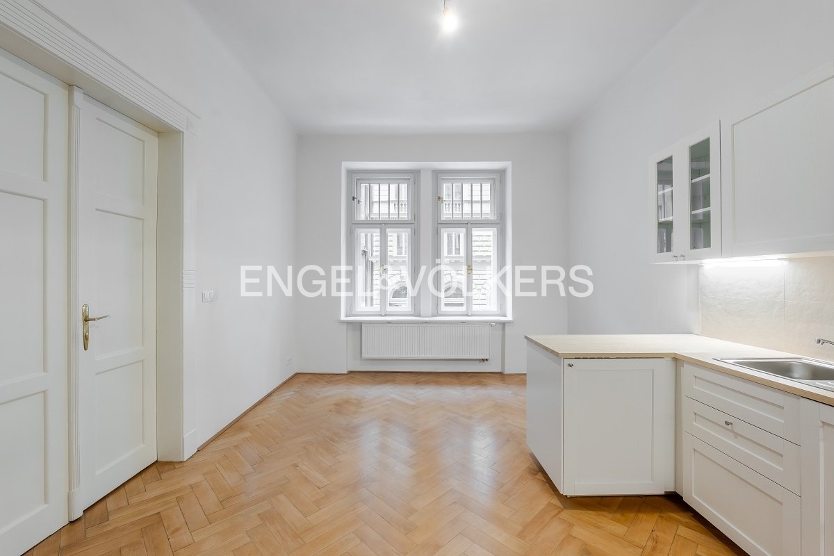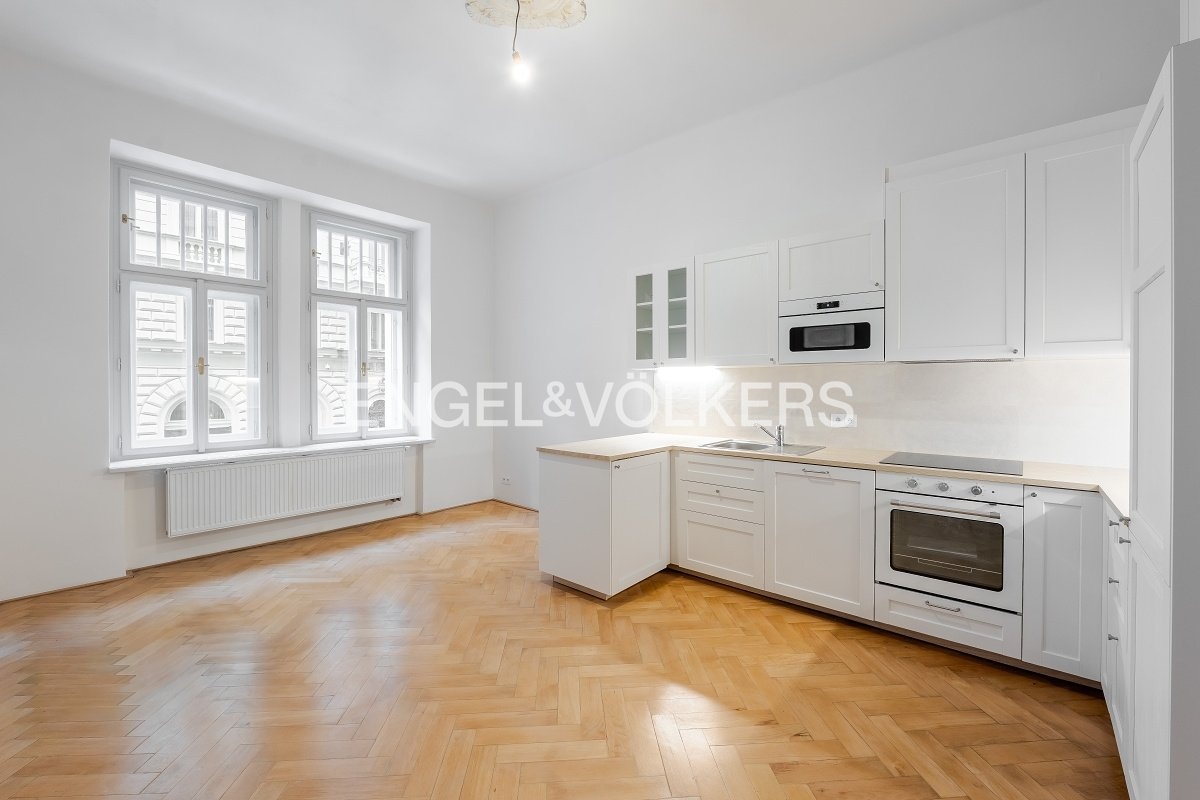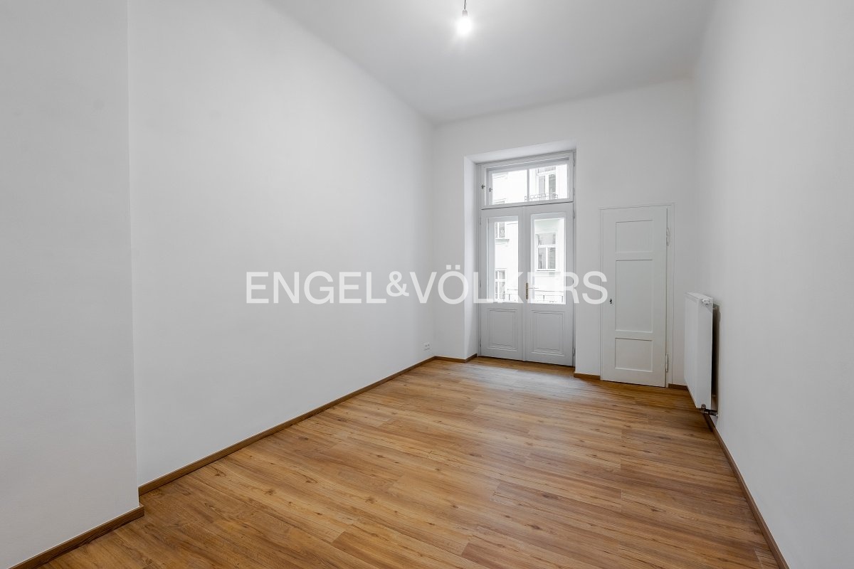 K pronájmu nabízíme byt po kompletní rekonstrukci s dispozicí 4+kk a celkovou plochou 104,5 m² připravený pro prvního nájemce. Byt je situován ve zvýšeném přízemí (1. NP), přičemž úroveň oken odpovídá standardnímu 2. nadzemnímu podlaží. Dispozičně byt nabízí tři samostatné ložnice a kuchyni s menší obývací zónou. Dvě ložnice jsou orientované do klidného vnitrobloku, jedna z ložnic disponuje balkonem. Prostorná vstupní hala poskytuje přímý vstup do dvou ložnic a obývací části, třetí ložnice je přístupná z obývacího pokoje. Koupelna je vybavena sprchovým koutem, toaleta je oddělená. Byt je vybaven zcela novými okny s izolačním dvojsklem, která zajišťují výbornou tepelnou i zvukovou izolaci a maximální klid. K bytu náleží sklepní kóje. Velkou předností je výjimečná lokalita - jen pár kroků od Mánesa, s tramvajovými zastávkami v bezprostřední blízkosti domu a výbornou dostupností městské hromadné dopravy. Stanice metra Karlovo Náměstí (linka B) je v docházkové vzdálenosti. Lokalita zároveň nabízí kompletní občanskou vybavenost včetně obchodů, restaurací, kaváren, lékáren i dalších služeb. Měsíční poplatky činí 1 000 Kč / osoba + převod energií na nájemce. Byt je k dispozici ihned. Pro více informací nebo domluvení prohlídky mne neváhejte kontaktovat.