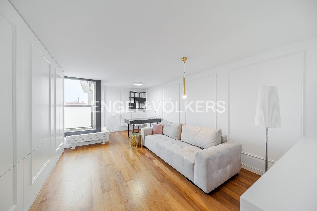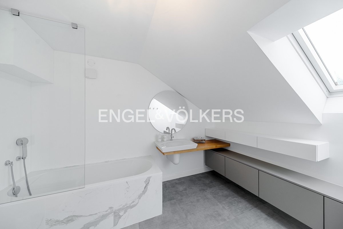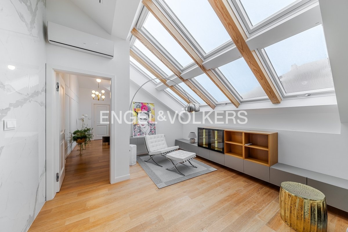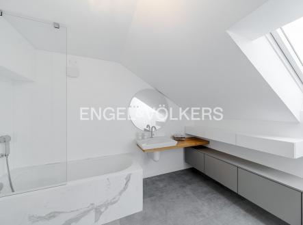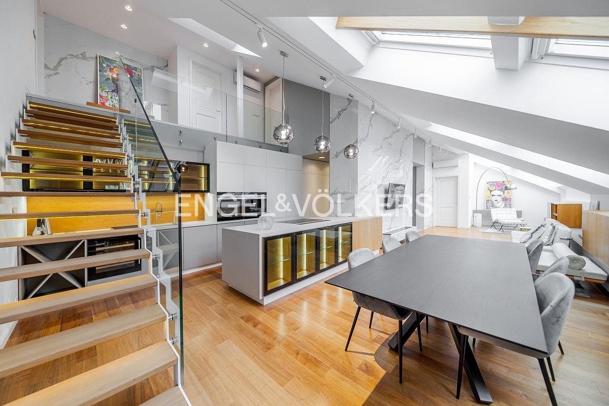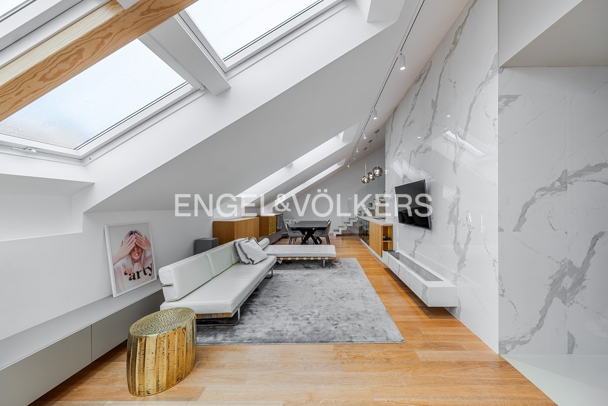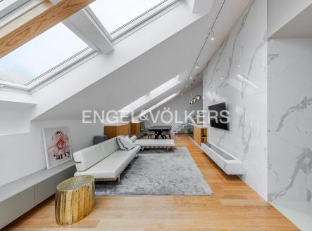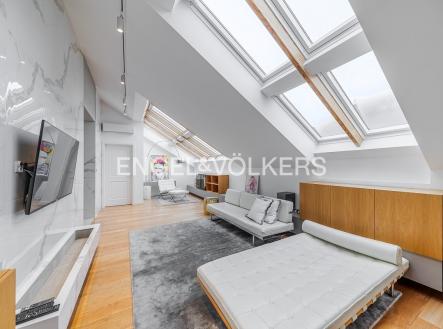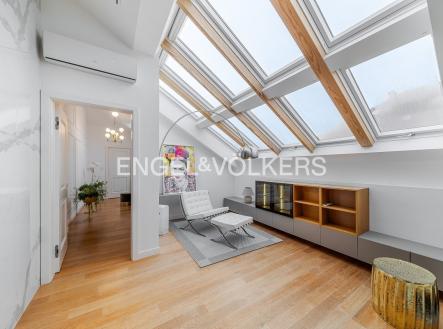 Nabízíme k pronájmu od 1. 3. 2026 zrekonstruovaný mezonetový byt situovaný v atraktivní lokalitě Prahy, ve zrekonstruovaném činžovním domě s výtahem, umístěný v pátém nadzemním podlaží. V domě se nachází recepce, neustálá security a podzemní garáže. Byt prošel nákladnou rekonstrukcí od architekta a má praktické rozvržení: Vstupní část tvoří otevřený koncept, který spojuje obývací pokoj, jídelní prostor a plně zařízenou kuchyň s elektronicky ovládaným push systémem, spotřebiče značky Siemens, vinotéku, kávovar a indukční varnou desku s integrovanou digestoří. Nachází se zde také ložnice se šatnou a vlastní koupelnou. V podkrovní části bytu je centrální koupelna a dvě ložnice s přístupem na terasu orientovanou na východ směrem do klidného vnitrobloku. V bytě jsou dvě klimatizace v dolním patře a jedna klimatizace v horním patře, přírodní materiály jako dřevo, kámen a sklo. V celém bytě je spoustu úložného prostoru s otvíráním na push system. K bytu jsou v ceně dvě parkovací stání. Poplatky spojené s užíváním bytu činí 11 500 Kč měsíčně. Elektřina se hradí zvlášť. Do poplatků bude zahrnut úklid, který bude probíhat jednou za dva měsíce.