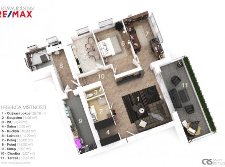 Velký byt 4+1, 115m² s terasou a výhledem do zeleně – Praha 5, Pod Skalkou