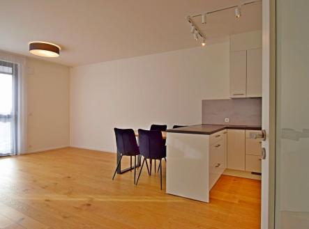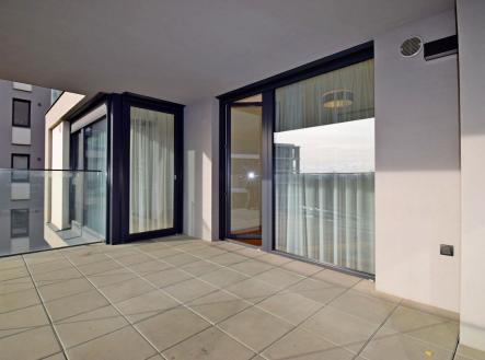 Velmi hezký 2+kk s velkorysým balkonem a garážovým stáním v novostavbě u metra Želivského