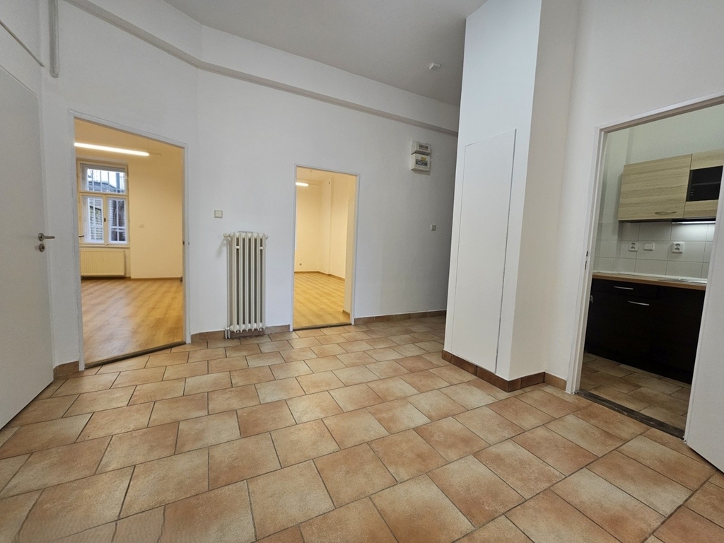 Pronájem velmi pěkného nebytového prostoru o velikosti 4+kk, 105 m2, s komorou, Praha 2 - Vinohrady, ulice Pod Nuselskými schody. Prostor se nachází ve sníženém přízemí ve zrekonstruovaném činžovním domě. Vstup do prostoru je přímo z ulice a 1 další východ (označený jako nouzový) ústí do domovní chodby. Prostor je orientovaný na východ do klidné jednosměrné ulice (2 místnosti) a na západ do klidného vnitrobloku (2 místnosti). Prostory jsou po právě dokončené renovaci a jsou vhodné jak pro kancelářský provoz, volnočasové aktivity - školička, kroužky, dětské skupiny, jóga a pod. nebo i výrobnu s tichým provozem. Prostor má prosklený vstup s menší výlohou zabezpečený mřížemi a na všech oknech jsou nainstalovány rovněž i bezpečnostní mříže. Prostor se skládá ze vstupní místnosti a dalších 3 neprůchozích místností, do kterých je vstup z prostorné haly, která umožňuje také vstup do kuchyňského koutu, koupelny se sprchovým koutem, ve které jsou teď aktuálně 2 dětská WC a 2 dětská umývadla (po dohodě je možné vyměnit za 1 klasické WC + umývadlo) a samostatného WC s umývadlem. Na podlaze je plovoucí podlaha a dlažba. Topení je etážové - vlastní plynový kotel, který zajišťuje vytápění celého prostoru. Ohřev vody je el. bojlerem. Parkování je možné na ulici (modré zóny) nebo na přilehlém placeném parkovišti. Dům se nachází v klidné části na rozhraní Vinohrad a Nuslí. Cca 80 m od domu je zastávka tram č. 6 a 11 s přímým spojením do samotného centra Prahy - I.P. Pavlova, Karlovo náměstí, Václavské náměstí, Muzeum, Flora apod. a rovněž na všechny linky metra. Občanská vybavenost je v místě - rozsáhlá maloobchodní síť a supermarket Billa. Prostor je výhradně nekuřácký, je volný ihned. Vratná kauce je ve výši 40.000 Kč.