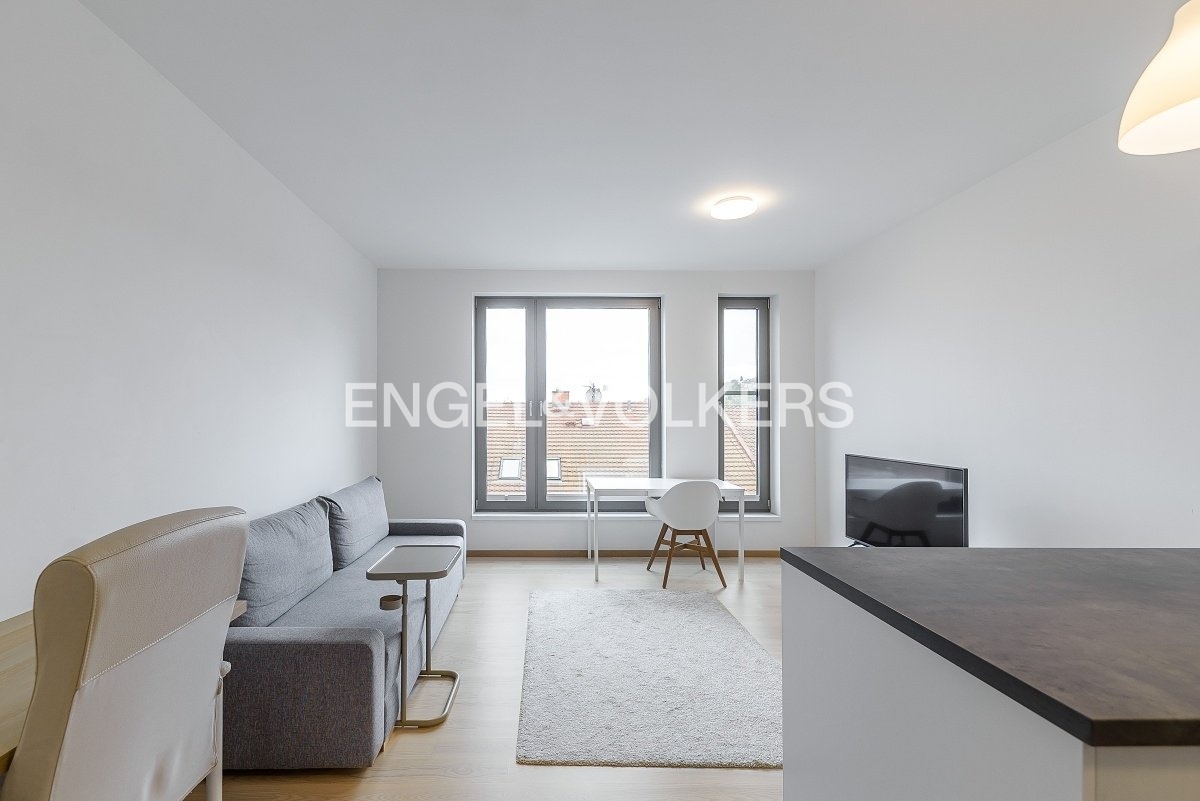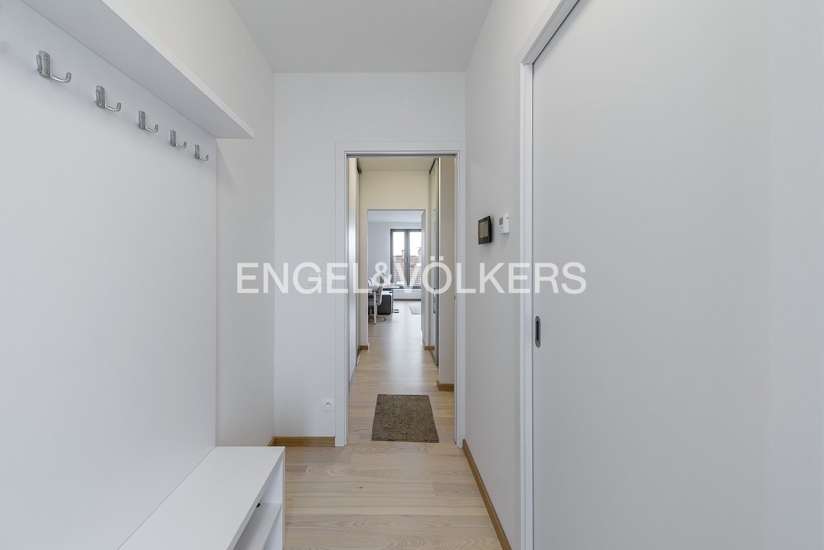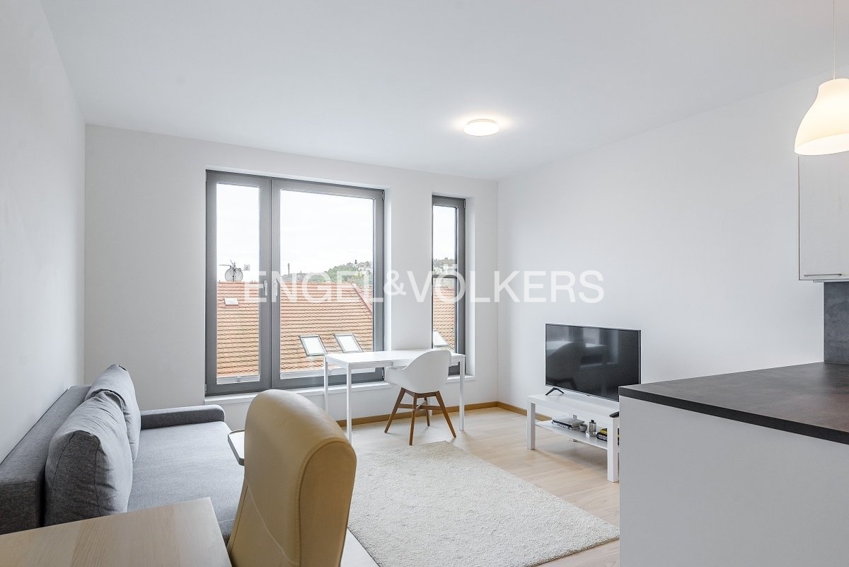 K pronájmu od 15. března 2026 bude připravený praktický byt s dispozicí 2+kk v nové rezidenci. Projekt vznikl nástavbou na historický činžovní dům, jedná se tedy o spojení původní architektury s moderními prvky. Vysoký standard dokončení garantuje nájemci velmi komfortní bydlení. Hlavní místnost je obývací pokoj spojený s kompletně zařízenou kuchyní s vestavěnými spotřebiči včetně pračky. Pokoj je díky francouzským oknům velmi světlý a nabízí unikátní výhledy na město. Ložnice je orientovaná do klidného vnitrobloku. V bytě je koupelna se sprchou a toaletou. Ve vstupní hale jsou vestavěné šatní skříně s dostatkem úložných prostor. Vstup do bytu je na konci společné pavlače, což zajišťuje dostatek soukromí. K bytu je za příplatek možné si pronajmout i sklep. Byt se pronajímá zařízený nábytkem. Atraktivní lokalita pražského Smíchova disponuje veškerou občanskou vybaveností a skvělou dopravní dostupností.