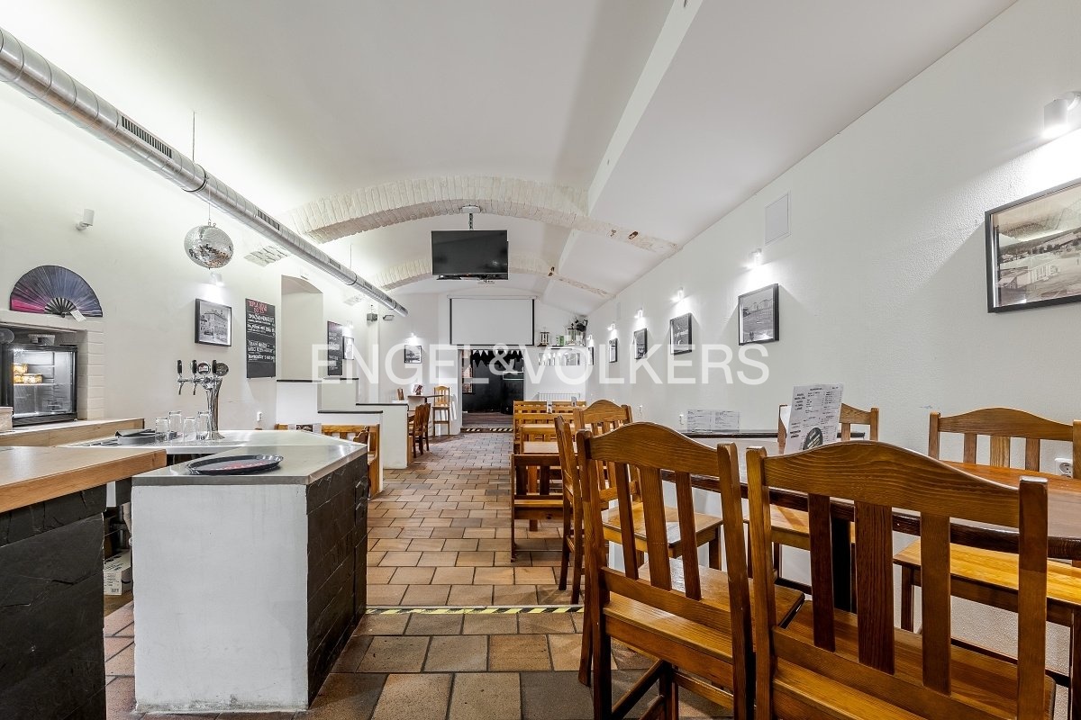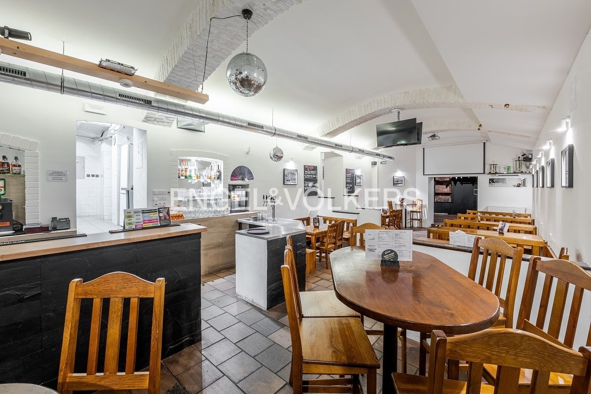 K pronájmu nabízíme vybavenou a zrekonstruovanou hospodu ve Vršovicích v Moskevské ulici v bezprostřední blízkosti tramvajové zastávky Ruská. Prostory kolaudované jako restaurace se nachází v prvním podzemním podlaží bytového domu, vstup pro zákazníky je přímo z ulice, zásobovací vstup přes budovu je zabězpečen mříží. Prostory se dávají do pronájmu s veškerým vybavením, po rekonstrukci, s odstupným. Vstup je přes schodiště dolů, přes vstupní halu, ve které se nachází pánské a dámské sociální zařízení, po pravé straně je chodba do skladových prostor a salonku. Po levé straně je vstup do jídelní místnosti s barem a výčepem, v zadní části prostor se nachází taneční parket s pultem pro DJe. Část s tanečním parketem je zvukově izolována a nad prostorem v prvním nadzemním podlaží se nachází kanceláře, proto provoz nebude rušit obyvatele domu. Prostory jsou zařízeny ve stylu typické hospody, avšak nabízí možnost upravit si je pro libovolný gastronomický koncept.