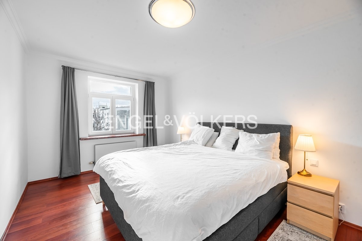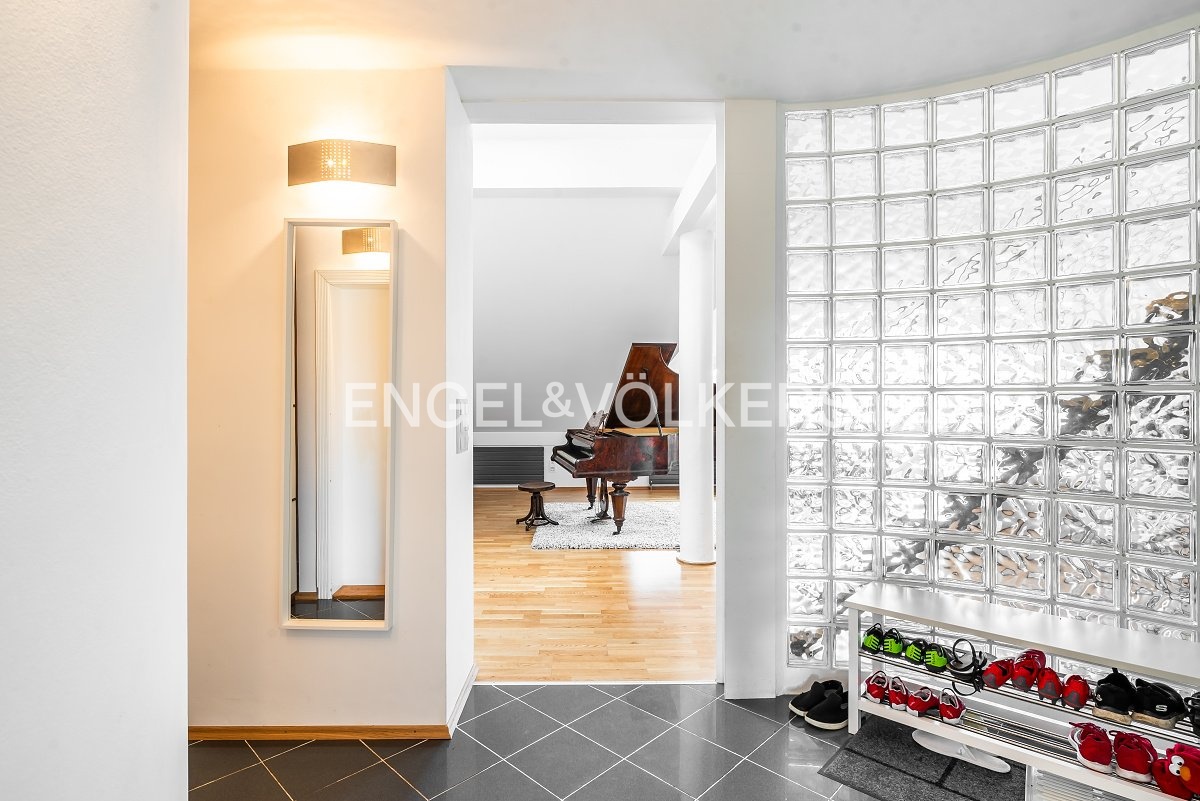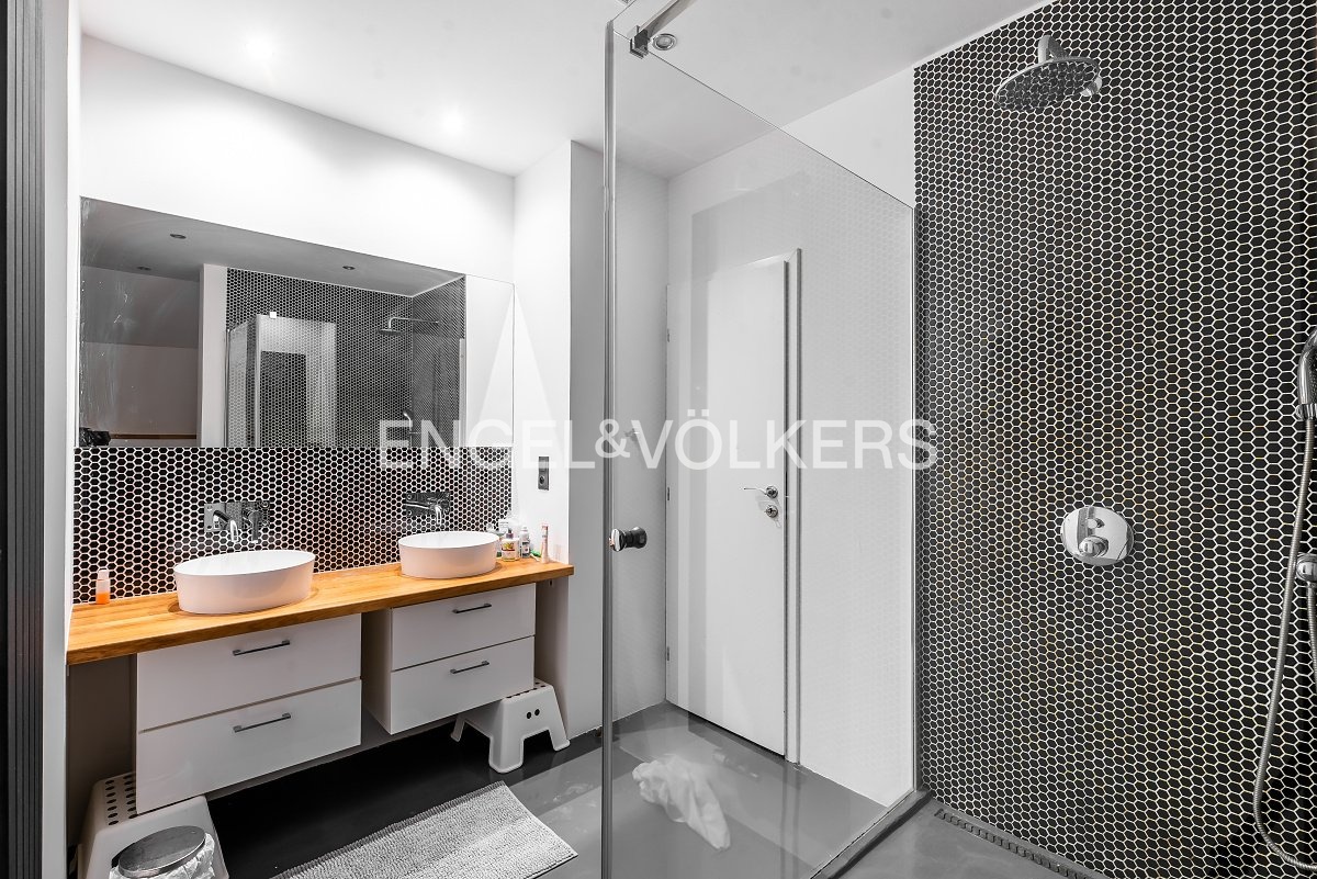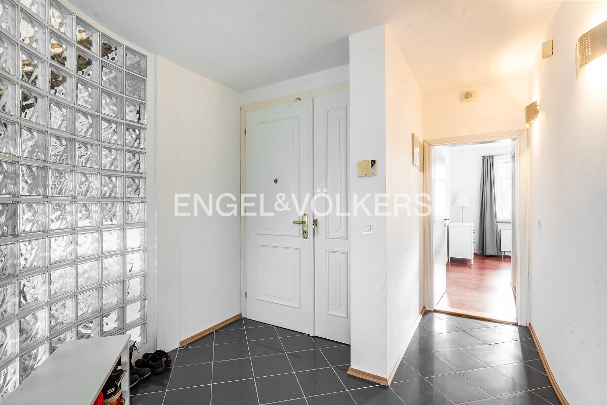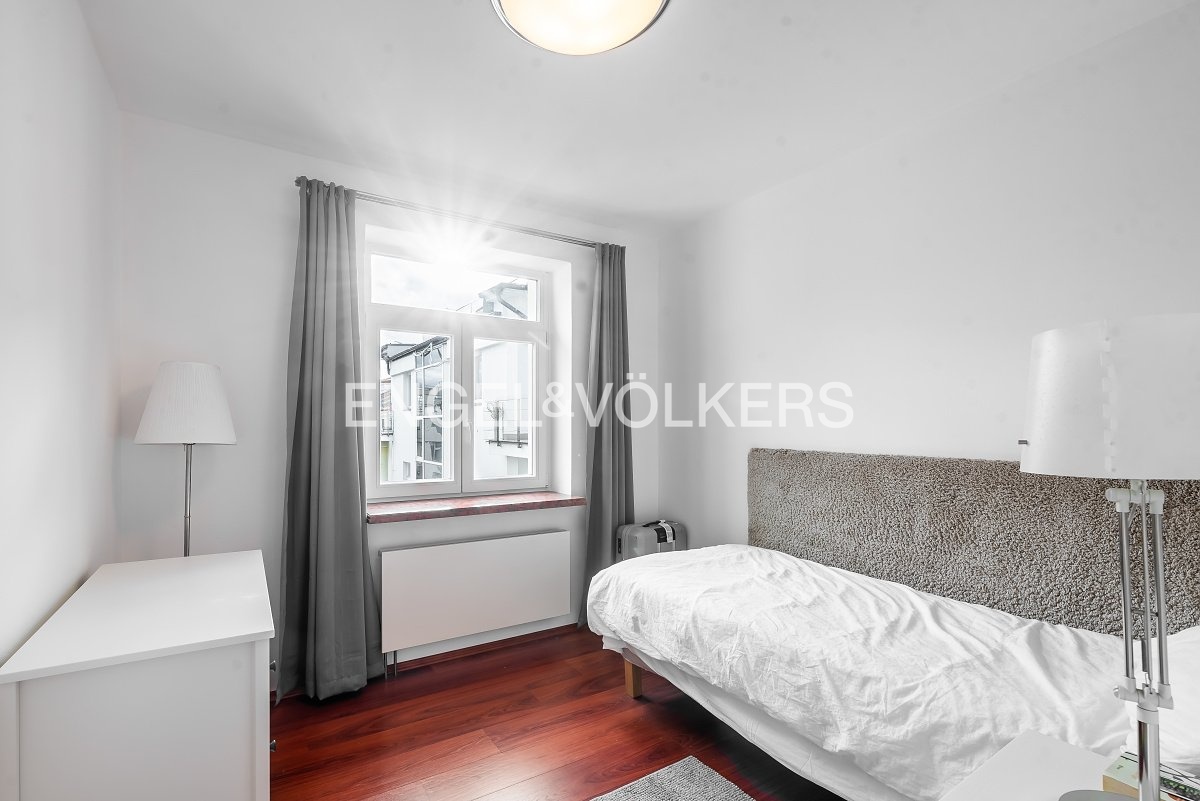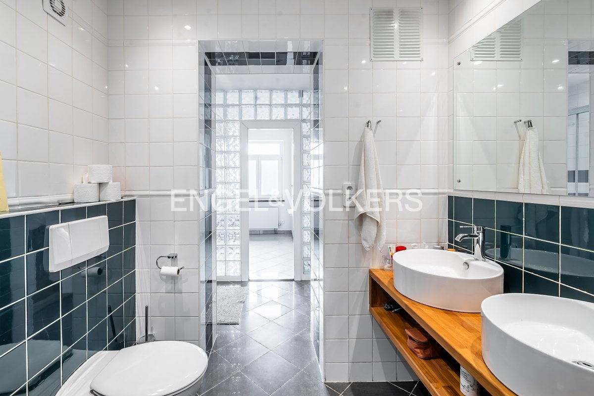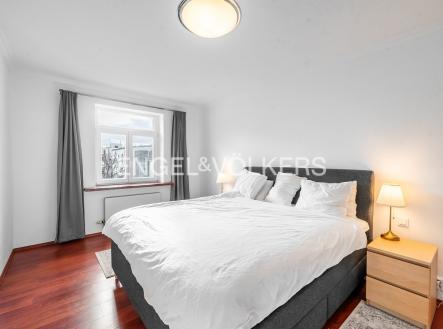 Moderní a vzdušný mezonet situovaný v nejvyšším podlaží historického činžovního domu na Rašínově nábřeží poskytující nepopsatelné výhledy na Vltavu a Hradčany. Díky velkým proskleným plochám je apartmán velmi světlý. Srdcem bytu je prostorný obývací pokoj propojený s galerií ve vyšším podlaží. Kuchyně je oddělená a kompletně zařízená vestavěnými spotřebiči. Apartmán má 4 ložnice, z nichž 3 jsou situovány v patře, v klidové zóně mezonetu. Tři koupelny, každá s vanou sprchovým koutem a bidetem. Terasa je orientovaná do klidného vnitrobloku a navazuje na zimní zahradu. Dřevěná podlaha, kvalitní dřevěná okna, dlažba. V domě je výtah. K bytu náleží jedno parkovací místo v garáži. Byt se pronajímá kompletně vybavený.