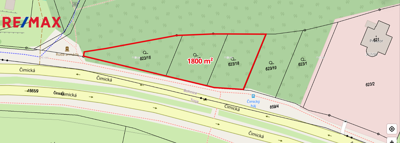 Nabízím k prodeji soubor tří pozemků o celkové výměře cca 1 800 m² v klidné a vyhledávané části Prahy 8 – Bohnice. Jedná se o parcely č. 623/16, 623/17 a 623/18 v k. ú. Bohnice. Pozemky jsou situovány v zeleni, u hlavní komunikace, s dobrou dostupností do centra Prahy. Územní plán: parcely 623/16 a 623/17 – LR (lesní porosty), součást lokálního biocentra parcela 623/18 – PS (sady, zahrady a vinice) celé území v celoměstském systému zeleně (návrh) Vhodné pro zahradu, sad, relaxační nebo přírodní využití, případně jako dlouhodobá investice do zeleně v Praze. Pozemky nejsou určeny k výstavbě domu ani chaty. Prodávají se výhradně jako celek. Z pohledu investice jde o velmi zajímavou příležitost. Ceny pozemků v této lokalitě mají dlouhodobě vzestupný trend a díky aktuálně výhodným úrokovým sazbám se jedná o bezpečné a výnosné uložení financí. V případě zájmu mě neváhejte kontaktovat, rád poskytnu více informací.