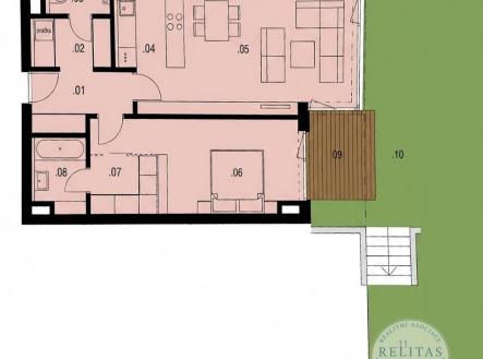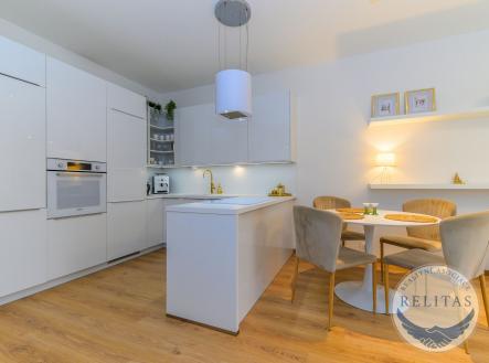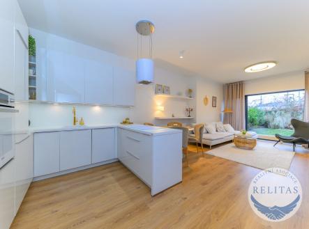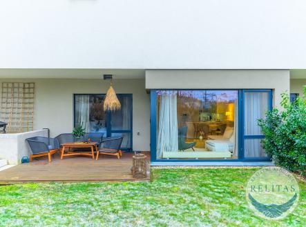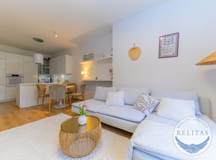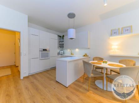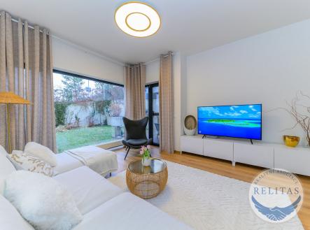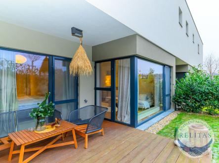 Zařízený byt 2+kk v novostavbě, 73 m² + zahrada s bazénem + GS, Praha 12 - Modřany