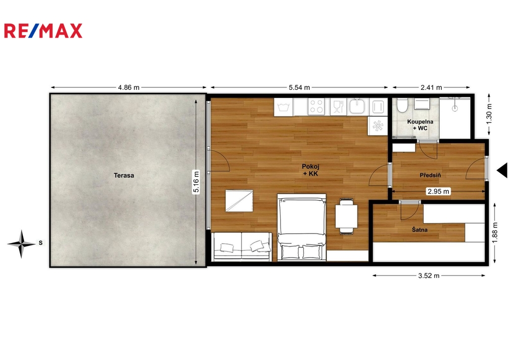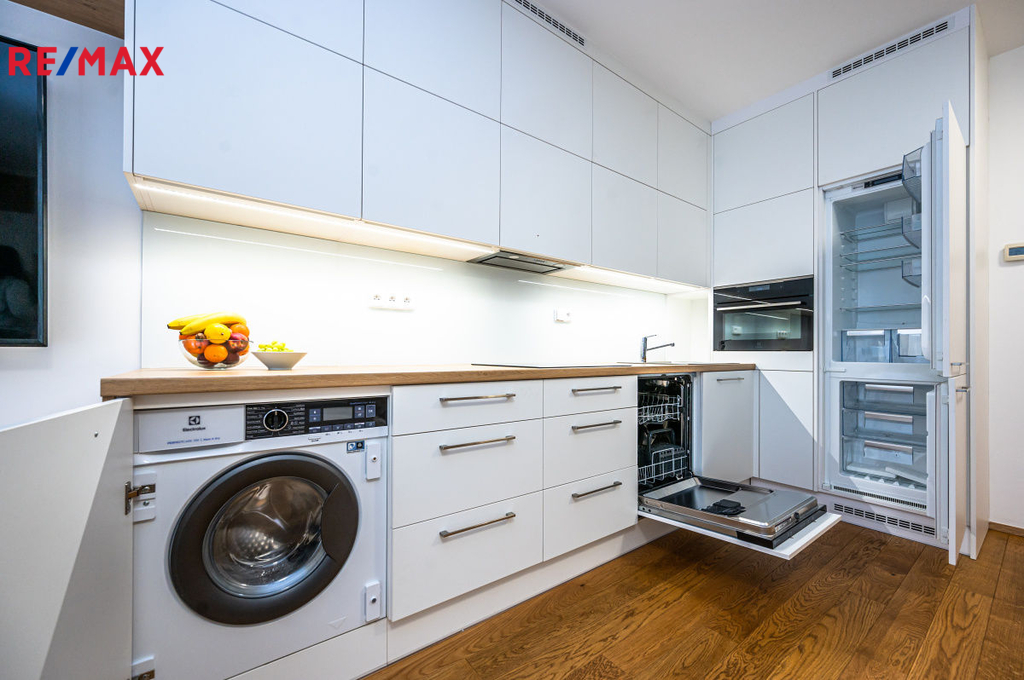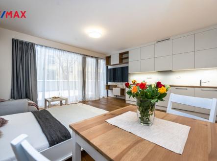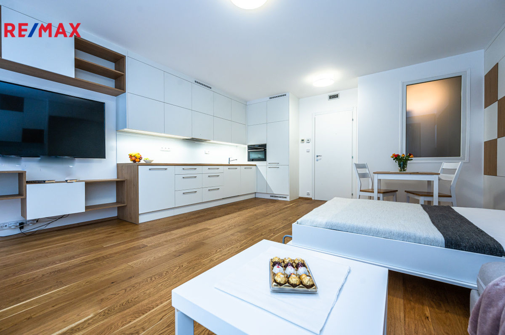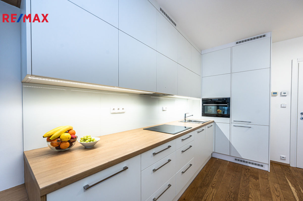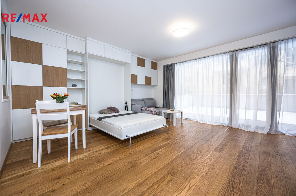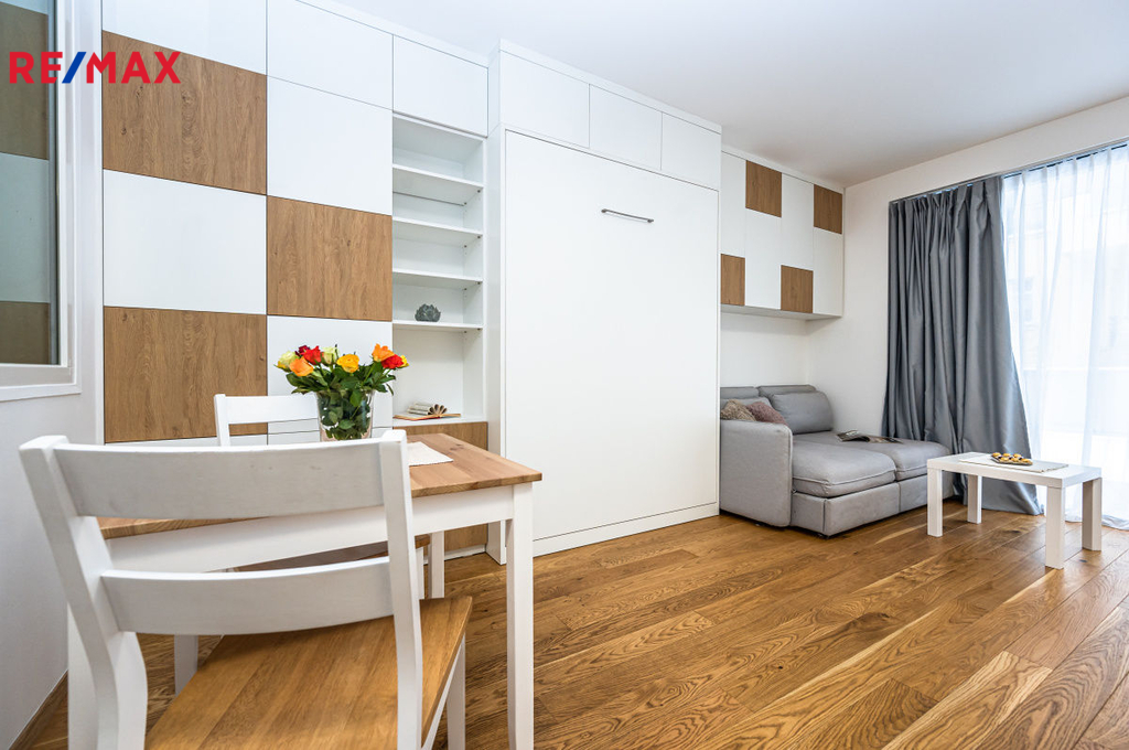 Ve výhradním zastoupení Vám nabízím k pronájmu velmi pěkný a kompletně zařízený byt 1+kk s terasou, garážovým stáním a sklepní kójí. Byt je ihned k dispozici. K bytu, který se nachází v 1. NP (44,8 m2) patří prostorná terasa (24,2 m2). Naproti bytu je sklepní kóje (1,3 m2) a garážové stání v 1. PP. Kuchyňská linka je plně vybavena myčkou, ledničkou s mrazákem, troubou, automatickou pračkou se sušičkou. Celý byt je velmi prakticky řešen nábytkem na míru s vyklápěcím lůžkem (š. 1,4 m). Naleznete tu dostatek úložného prostoru a to nejen v prakticky řešené samostatné šatně. Nájem 19.000,-/měs. Záloha na služby 3.730,-/měs. Záloha na elektřinu 1.000,-/měs. Celkem 23.730,- 38.000,- vratná kauce 0,- provize RK V pěší vzdálenosti je: - 4 min. tramvajová zastávka U Kříže a Libeňský zámek (TRAM č. 1, 3, 24, 90) - 15 min. Albert, Billa, Kaufland a další - 15 min. pěšky nebo 4 min. tramvají na metro B Palmovka V pěší vzdálenosti se nachází několik MŠ, ZŠ, gymnázium, dětská hřiště, parky, restaurace, kavárny. Hledáme nekuřáky bez domácích mazlíčků. Máte-li zájem o prohlídku tohoto bytu, kontaktujte mě prosím telefonicky nebo mailem.