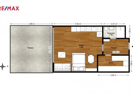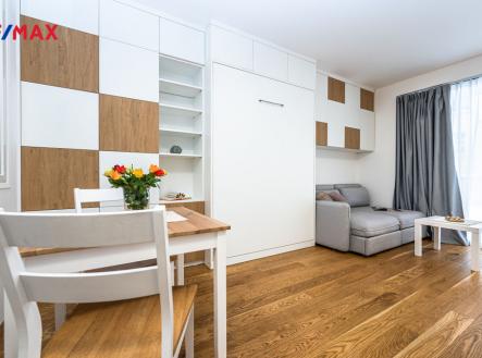 Zařízený byt s terasou a garáží, jen 4 min. od metra Palmovka