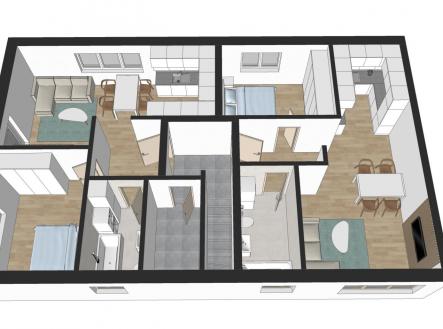 Nabízíme k prodeji byt v o velikosti 2+kk o výměře 50,9 m2, + půda nad bytem cca 16m2, který je součástí moderní novostavby domu se třemi bytovými jednotkami v obci Pravlov. Byt se nachází ve 2.NP . Možnost dokoupit parkovací stání u domu, klimatizaci, venkovní žaluzie. Standardy bytu, které jsou součástí ceny bytu: - podlahy - lamino/vinyl clic, keramická dlažba (možnost klientské změny) - sanitární technika - vybavení koupelny, WC - vč. montáže - interierové dveře + obložkové zárubně - okna plastová, 5-ti komorová, trojsklo, vstupní dveře celoprosklenné - vytápění - tepelné čerpadlo - podlahové vytápění do systémových desek vč. rozdělovače, v koupelně i topné těleso - fotovoltaika - vzduchotechnika průduchy, rekuperace V ceně bytu je příprava na kuchyňskou linku (kuchyňská linka není v ceně bytu). Více informací ohledně financování a vč. podkladů v RK. V případě financování hypotečním úvěrem - finanční poradce zajištěn. Energetická třída B.