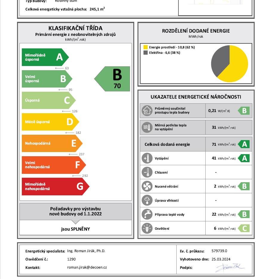 Nabízíme k prodeji novostavbu bytu v OV o velikosti 2+kk o výměře 50,9 m2, + půda nad bytem cca 16m2, který je součástí moderní novostavby domu se třemi bytovými jednotkami v obci Pravlov. Byt se nachází ve 2.NP . Možnost dokoupit parkovací stání u domu, nebo parkovací stání, se skladem, klimatizaci, venkovní žaluzie. Standardy bytu, které jsou součástí ceny bytu: - podlahy - lamino/vinyl clic, keramická dlažba (možnost klientské změny) - sanitární technika - vybavení koupelny, WC - vč. montáže - interierové dveře + obložkové zárubně - okna plastová, 5-ti komorová, trojsklo, vstupní dveře celoprosklenné - vytápění - tepelné čerpadlo - podlahové vytápění do systémových desek vč. rozdělovače, v koupelně i topné těleso - fotovoltaika - vzduchotechnika průduchy, rekuperace V ceně bytu je příprava na kuchyňskou linku (kuchyňská linka není v ceně bytu). Více informací ohledně financování a vč. podkladů v RK. V případě financování hypotečním úvěrem - finanční poradce zajištěn. Energetická třída B.
