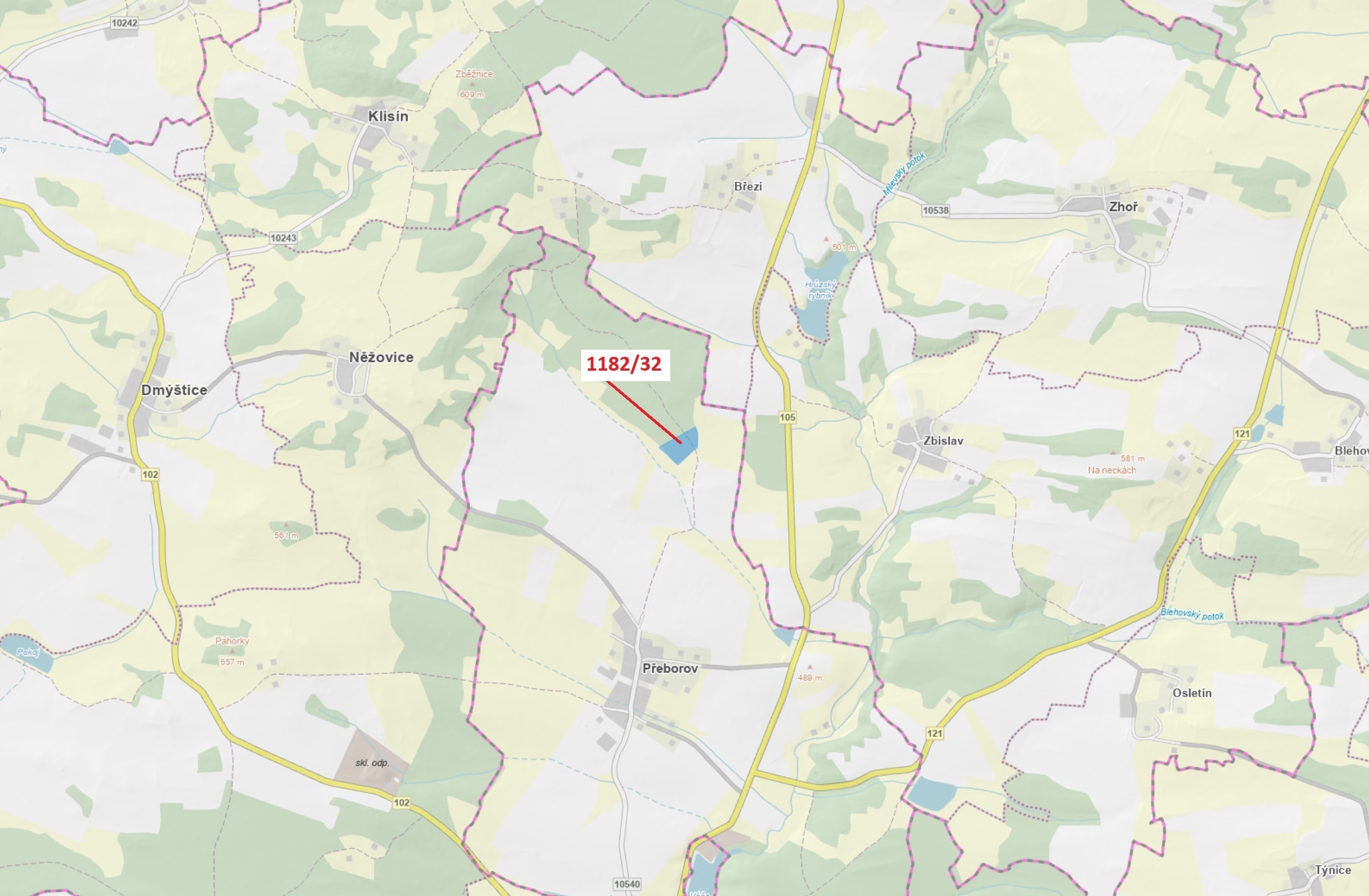 Lesní pozemek o výměře 16 134 m2, podíl 1/1, katastrální území Přeborov, obec Přeborov, obec s rozší