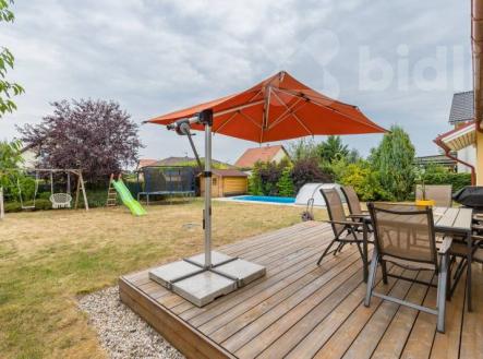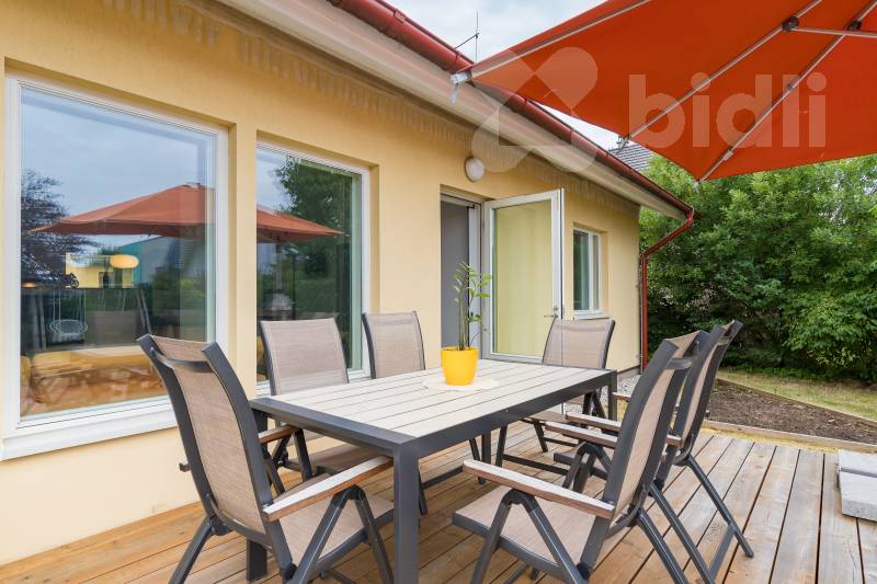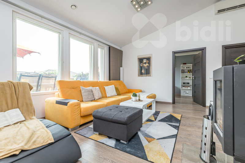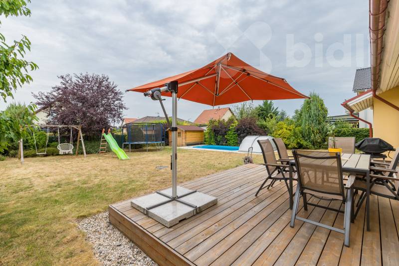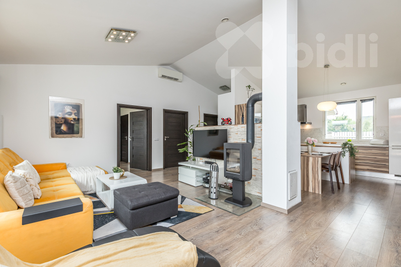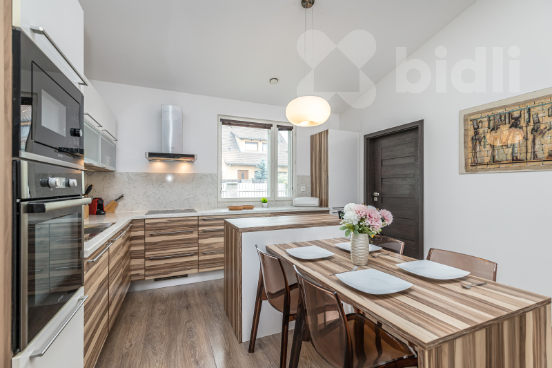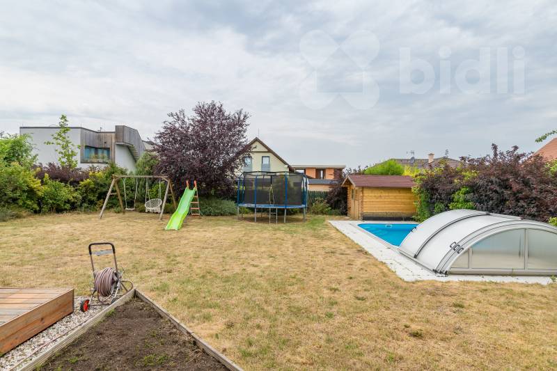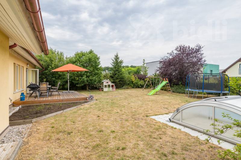 Upozornění: Tato nabídka je rezervována konkrétním zájemcem a v rezervační lhůtě není k dispozici! Exkluzivně doporučujeme ke koupi nadstandardní rodi nný dům o dispozici 4+kk v žádané lokalitě Předboj, jen 10minut jízdy od Prahy. Dům kombinuje kvalitní materiály, moderní technologie a promyšlené dispoziční řešení. Ideální pro rodinné bydlení v klidném prostředí s výbornou dostupností. Dům byl postaven ve finském stylu, který zajišťuje výborné izolační vlastnosti a dlouhou životnost. V interiéru se nachází prostorný obývací pokoj s krbem značky Jotul, plně vybavený kuchyňský kout se spotřebiči, hlavní ložnice, dva další pokoje, koupelna s vanou i sprchovým koutem, dvě samostatné toalety, technická místnost a sklad. Podlahy jsou kombinací plovoucího lamina a dlažby. Vytápění zajišťuje teplovodní podlahové topení napojené na tepelné čerpadlo Nibe a je typu vzduch-voda. V domě je dále instalována centrální rekuperace vzduchu pro zdravé vnitřní klima a klimatizace pro maximální komfort v letních měsících. Samozřejmostí je zabezpečovací systém Jablotron s možností napojení na PCO. Pro energetickou soběstačnost pak jistě nebude problém instalace fotovoltaické elektrárny. Na pečlivě udržované zahradě se nachází zastřešený bazén se slanou technologií a vlastním tepelným čerpadlem, terasa pro venkovní posezení, zahradní domek a automatický závlahový systém Hunter. Příjezd k domu je řešen přes elektricky ovládanou bránu, k dispozici je přístřešek pro auto. Obec Předboj nabízí kompletní občanskou vybavenost - mateřskou školu, restauraci, knihovnu, dětská hřiště, sportovní areál a populární golfový resort Yard Resort. Základní škola je v nedalekých Líbeznicích. Spojení do Prahy zajišťuje autobusová linka PID (na metro Ládví), případně vlaková stanice Kojetice. Hlavní výhody: - Dispozice 4+kk - Podlahové topení + krb Jotul - Rekuperace, klimatizace - Zabezpečení Jablotron - Bazén se slanou technologií a tepelným čerpadlem - Automatická závlaha Hunter - Přístřešek pro auto + el. brána - Vzrostlá zahrada a terasa - Výborná dopravní dostupnost do Prahy Pro více informací nás neváhejte kontaktovat, popřípadě si rovnou zavolejte o prohlídku.