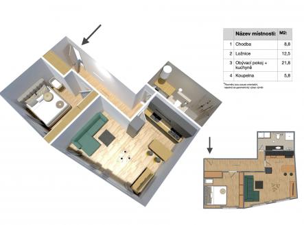 Hledáte moderní byt 2+kk v klidné lokalitě s výbornou dostupností do Prahy? Pak pro vás máme skvělou nabídku v obci Předměřice nad Jizerou. Nabízený byt se nachází ve 2. nadzemním podlaží cihlového domu a nabízí celkovou plochu 55,6 m², včetně zděného sklepa o velikosti 5,1 m². Dispozice bytu je prakticky řešená – světlý obývací pokoj s kuchyňským koutem, samostatná ložnice, koupelna s toaletou a předsíň tvoří příjemný a funkční celek. Veškerý nábytek je v celém bytě řešen truhlářem na míru, vše v nadstandardním provedení. Dům prošel kompletní rekonstrukcí a byl zkolaudován v roce 2023, takže vás čeká nové, moderní bydlení bez dalších investic. Energetická náročnost třídy B zajišťuje nízké provozní náklady, což oceníte dlouhodobě. Lokalita nabízí vše, co potřebujete ke komfortnímu životu – obchod, poštu, sportovní areál, mateřskou i základní školu máte v docházkové vzdálenosti, přičemž školka i škola se nachází přímo naproti domu. Výborná je také dopravní dostupnost – díky dálnici D10 i PID jste během krátké chvíle v Mladé Boleslavi, Brandýse nad Labem – Staré Boleslavi nebo v Praze. K domu náleží tři parkovací stání na vlastním pozemku, přičemž jedno parkovací stání je přímo k tomuto bytu. Další parkování je možné pohodlně v okolí. Bonus navíc představuje příprava na nabíjení elektromobilů, společná technická místnost a úklidová komora. Byt je napojen na elektřinu, internet a obecní kanalizaci, zásobování vodou zajišťuje vlastní studna s čističkou. O komfort se stará elektrické podlahové vytápění a moderní elektrický bojler na ohřev vody. Ideální volba jak pro vlastní bydlení, tak jako investice k pronájmu. Neváhejte a domluvte si prohlídku – podobné nabídky se dlouho neohřejí.