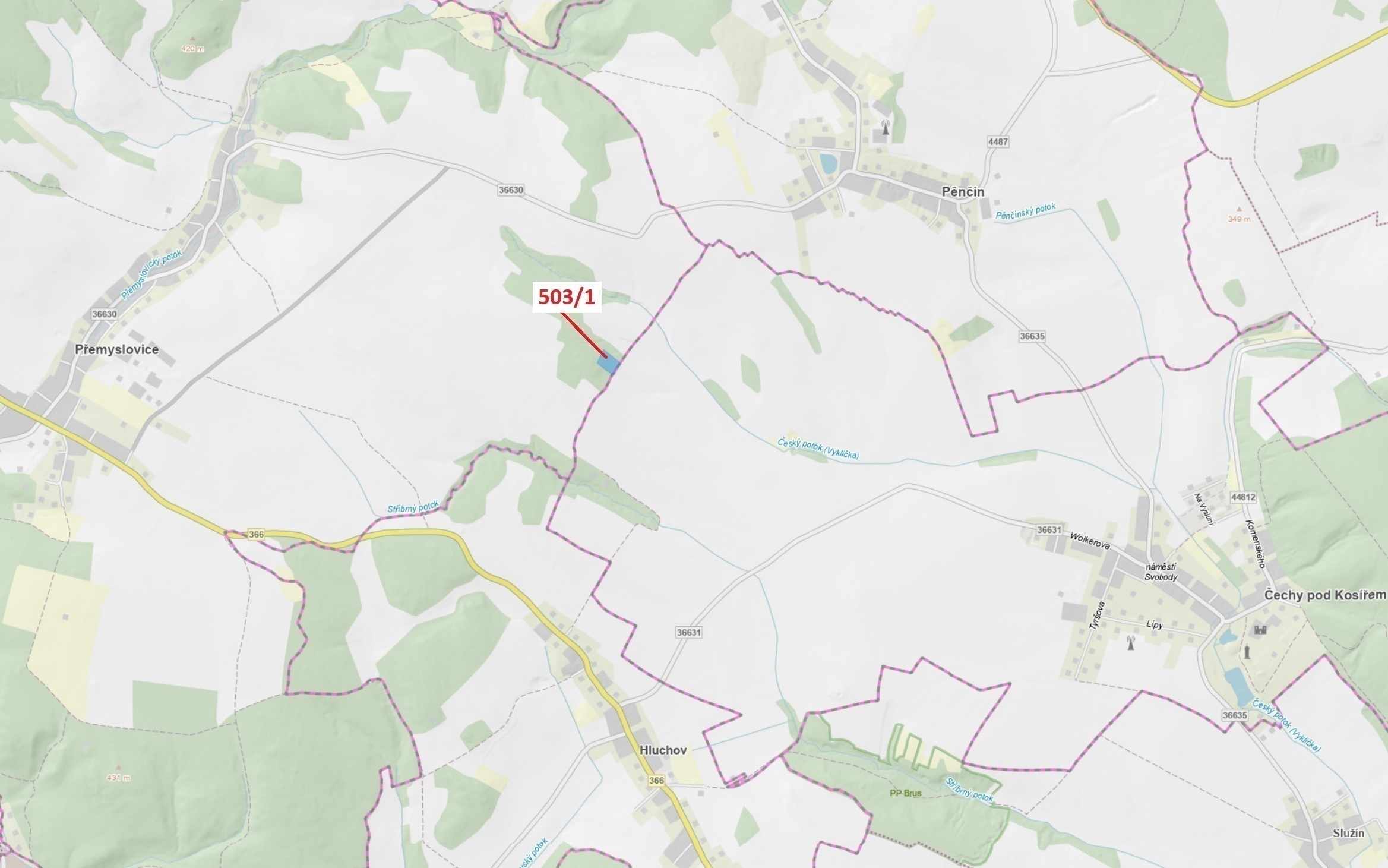 Lesní pozemek o výměře 7 049 m2, parcelní číslo 503/1, podíl 1/1, katastrální území Přemyslovice, obec Přemyslovice, obec s rozšířenou působností Prostějov, okres Prostějov, Olomoucký kraj. Po těžbě.