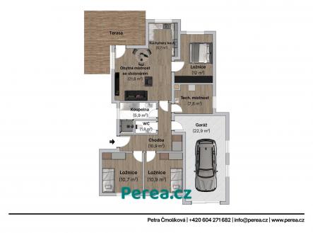 Exkluzivně nabízíme moderní rodinný dům v klidné části Přerova, na ulici Jarní. Dům o dispozici 4+kk byl zkolaudován v roce 2016 a nabízí komfortní a úsporné bydlení s důrazem na kvalitu, prostor a nízké provozní náklady. Užitná plocha domu činí 113 m², zastavěná plocha 140 m². Dům je postaven z cihelných tvarnic Porotherm Heluz a zateplen fasádním polystyrenem o tloušťce 120 mm, což spolu s plastovými okny s izolačním trojsklem zajišťuje výborné tepelně-izolační vlastnosti. Součástí domu je prostorná garáž s přímým vstupem do obytné části. Vrata i vjezdová brána jsou ovládány na dálkové ovládání. V domě jsou plastová okna s trojskly a kovové žaluzie na elektrické ovládání v každé místnosti. Podlahy v koupelně a chodbách jsou keramické, v obytných místnostech laminátové. Dominantou obývacího pokoje jsou krbová kamna, která nejen zpříjemní atmosféru, ale zároveň efektivně doplňují vytápění domu. Vytápění je podlahové, s přípravou pro instalaci tepelného čerpadla. Nemovitost byla užívána pouze minimálně, nachází se tedy ve výborném, téměř novém stavu. Dům je zcela bezbariérový a připravený k okamžitému nastěhování. Pro více informací a sjednání prohlídky mě prosím kontaktujte.