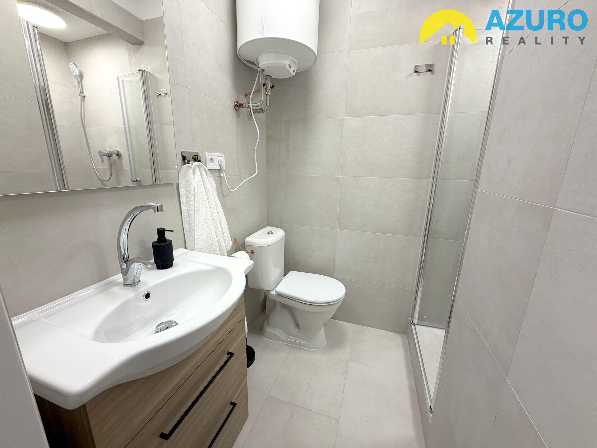 Nabízíme k pronájmu nadstandardní byt 1+kk v domě po rekonstrukci v centru Přerova, na ul. Komenského. Vkusně zrekonstruovaný a vybavený byt o ploše 20 m2 je situován ve 2. NP čtyřpodlažního cihlového domu. V bytě plně vybavená kuchyňská linka s vestavěnými spotřebiči (sklokeramická varná deska, el. trouba, digestoř, lednice) a pračkou, v koupelně vyzděný sprchový kout, umyvadlo se zásuvkovou skříňkou a toaleta. Pokoj vybaven nábytkem prvotřídní kvality včetně boxspring postele. Vytápění zajištěno plynovým kotlem, ohřev vody bojlerem, měsíční zálohy za energie (teplo, voda) ve výši 1.500,- Kč, plus elektřina, kterou přepisujeme na nájemce. Vratná jistota pronajímateli ve výši 20.000,- Kc, poplatek RK ve výši nájemného plus DPH (21 %). Atraktivní, vkusně zařízený byt v centru města, k nastěhování po domluvě ihned..