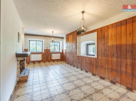 Chcete-li si užít oázy klidu a zároveň mít k dispozici dům s velkou užitnou plochou, bazén a krásné venkovní posezení s krbem, tak právě pro Vás je zde ideální nemovitost. Dům kousek od Řevničova o třech podlažích nabízí podlahovou plochu 152 m2, rozkládá se na pozemku o velikosti 753 m2 a dříve sloužil jako penzion. K těmto účelům je možné jej využít i nyní. V přízemí domu se nachází 2 pokoje, tech. místnost, kuchyň, koupelna, 2 x WC a rovněž vstup do sklepa, který má plochu 8 m2. V prvním patře domu se nachází 2 pokoje, jeden se vstupem na balkón a druhý na terasu. V podkroví je koupelna, šatna, 2 pokoje a balkón. Velikou devizou nemovitosti je zastřešené posezení s krbem a bazénem o velikosti 7 x 3,5 m. Dům má ještě k dispozici samostatnou místnost o velikosti 14 m2 (využitelnou např. jako dílna), druhý venkovní krb a udírnu. Nemovitost je v zachovalém stavu a je vhodná k rekonstrukci dle svých představ. Je možné ji využít pro vícegenerační bydlení.