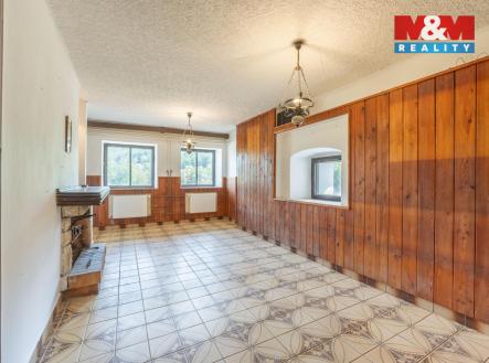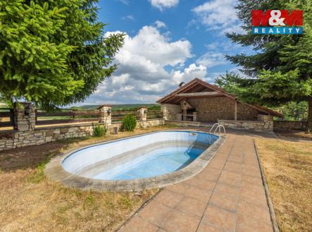 Chcete-li si užít oázy klidu a zároveň mít k dispozici dům s velkou užitnou plochou, bazén a krásné venkovní posezení s krbem, tak právě pro Vás je zde ideální nemovitost. Dům kousek od Řevničova o třech podlažích nabízí podlahovou plochu 152 m2, rozkládá se na pozemku o velikosti 753 m2 a dříve sloužil jako penzion. K těmto účelům je možné jej využít i nyní. V přízemí domu se nachází 2 pokoje, tech. místnost, kuchyň, koupelna, 2 x WC a rovněž vstup do sklepa, který má plochu 8 m2. V prvním patře domu se nachází 2 pokoje, jeden se vstupem na balkón a druhý na terasu. V podkroví je koupelna, šatna, 2 pokoje a balkón. Velikou devizou nemovitosti je zastřešené posezení s krbem a bazénem o velikosti 7 x 3,5 m. Dům má ještě k dispozici samostatnou místnost o velikosti 14 m2 (využitelnou např. jako dílna), druhý venkovní krb a udírnu. Nemovitost je v zachovalém stavu a je vhodná k rekonstrukci dle svých představ. Je možné ji využít pro vícegenerační bydlení.