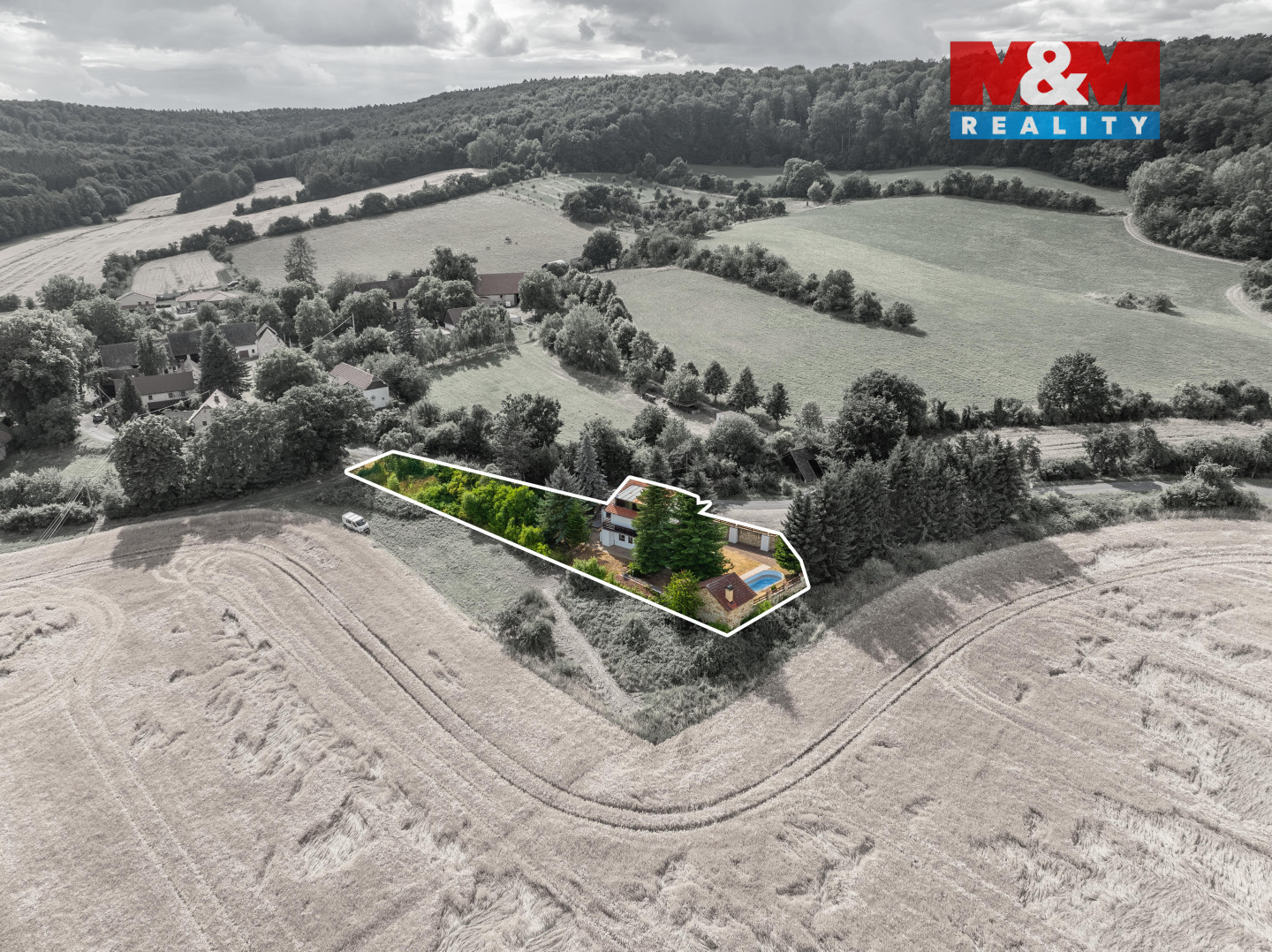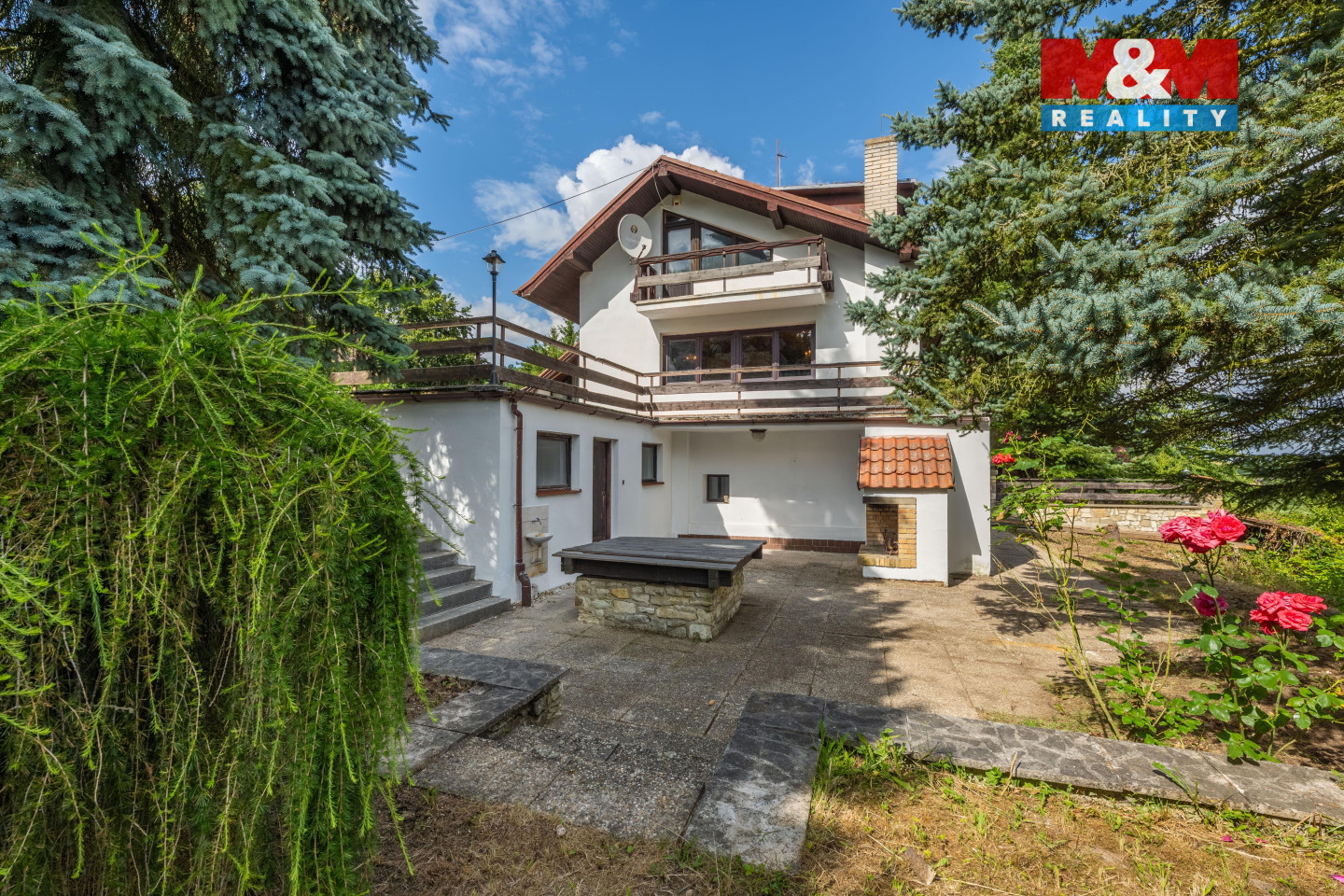 Chcete-li si užít oázy klidu a zároveň mít k dispozici dům s velkou užitnou plochou, bazén a krásné venkovní posezení s krbem, tak právě pro Vás je zde ideální nemovitost. Dům kousek od Řevničova o třech podlažích nabízí podlahovou plochu 152 m2, rozkládá se na pozemku o velikosti 753 m2 a dříve sloužil jako penzion. K těmto účelům je možné jej využít i nyní. V přízemí domu se nachází 2 pokoje, tech. místnost, kuchyň, koupelna, 2 x WC a rovněž vstup do sklepa, který má plochu 8 m2. V prvním patře domu se nachází 2 pokoje, jeden se vstupem na balkón a druhý na terasu. V podkroví je koupelna, šatna, 2 pokoje a balkón. Velikou devizou nemovitosti je zastřešené posezení s krbem a bazénem o velikosti 7 x 3,5 m. Dům má ještě k dispozici samostatnou místnost o velikosti 14 m2 (využitelnou např. jako dílna), druhý venkovní krb a udírnu. Nemovitost je v zachovalém stavu a je vhodná k rekonstrukci dle svých představ. Je možné ji využít pro vícegenerační bydlení.