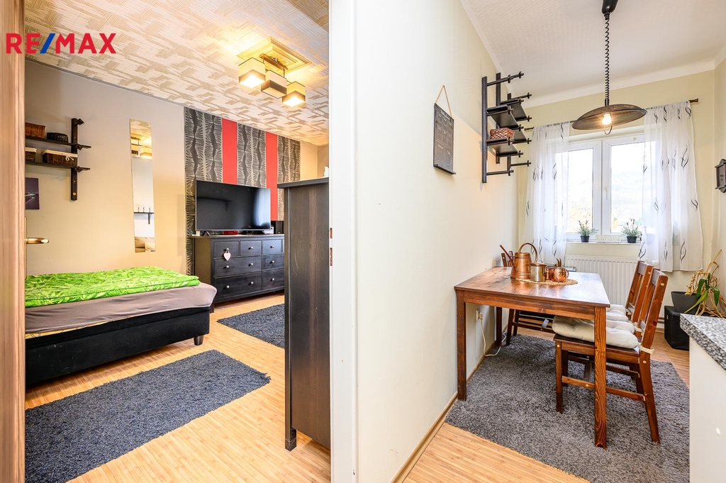 Bydlení v paneláku vás neláká? V Přestanově, nedaleko krajského města Ústí nad Labem, nabízíme na prodej bytovou jednotku se zahradou. Byt o dispozici 1+1 a celkové ploše 48 m2 se nachází ve druhém patře cihlového domu, v němž jsou 4 bytové jednotky. K bytu náleží zahrádka za domem o výměře 46 m2. Byt i zahrada jsou v osobním vlastnictví. Bytová jednotka má výměru 35 m2. K bytu náleží ještě polovina patrové kůlny za domem. Celková užitná plocha je tak 48 m2. Byt je v dobrém stavu, obytná ložnice má výměru téměř 18 m2, kuchyně s předsíní 11 m2 a prostorná zděná koupelna se samostatnou toaletou 6 m2. Všechna okna jsou plastová s izolačními dvojskly. Rozvody vody jsou v plastu, elektřina je vedena v mědi. V bytě je ústřední vytápění, zdrojem vytápění je elektrokotel, ohřev vody je zajištěn elektrickým bojlerem, k vaření slouží dvouplotýnková sklokeramická varná deska. Příčka mezi obytnou ložnicí a kuchyní je provedena ze sádrokartonu. Podlahy jsou dřevěné, je na nich položeno PVC. Měsíční náklady na provoz: elektřina 5000,- Kč (vytápění, ohřev vody, vaření a spotřebiče – lednice, pračka), voda cca 500,- Kč a fond oprav. Částka do fondu oprav se stanovuje podle plánovaných oprav, aktuálně činí 1000,- Kč. Dům má opravenou střechu; nová krytina, tzv. kanadský šindel, byla položena před dvěma lety. Sklep o výměře 66 m2 a půda (97 m2) jsou společnými prostorami. Obvodová zeď domu orientovaná k severu je zateplena polystyrenem. Bytové jednotky byly v domě vymezeny dokumentem Prohlášení vlastníka v roce 2010 a plocha zahrady byla rozdělena tak, aby ke každému ze 4 bytů patřila část zahrady. Pozemky zahrady náležející k bytům jsou odděleny geometrickým plánem a každý z nich je zapsán samostatně v katastru nemovitostí. Obec Přestanov leží pod Krušnými horami v okrese Ústí nad Labem, v polovině cesty autem mezi městy Ústí nad Labem a Teplice. Obec je dostupná autobusovou dopravou, do Ústí nad Labem jezdí MHD (autobusová linka 81). K dálnici D8 je to od domu 5 minut cesty autem. Za domem je dětské hřiště, v dosahu pěšky fotbalové hřiště a tenisové kurty. V blízkém okolí stojí za zmínku rybníky u Chlumce, jezero Milada či lanová dráha z obce Krupka na Komáří vížku. Máte-li zájem o prohlídku či bližší informace, kontaktujte makléře nabídky. Nabízíme bezplatné poradenství ohledně financování koupě. V případě více zájemců prodej nejvýhodnější nabídce.