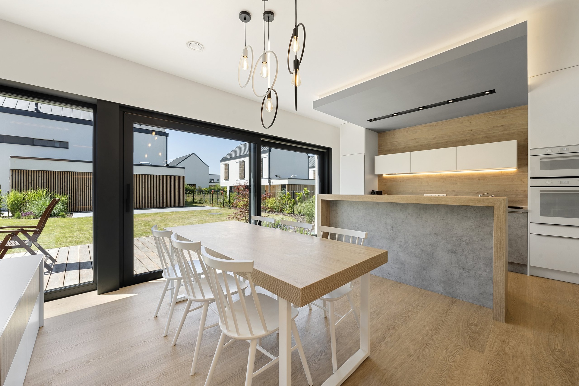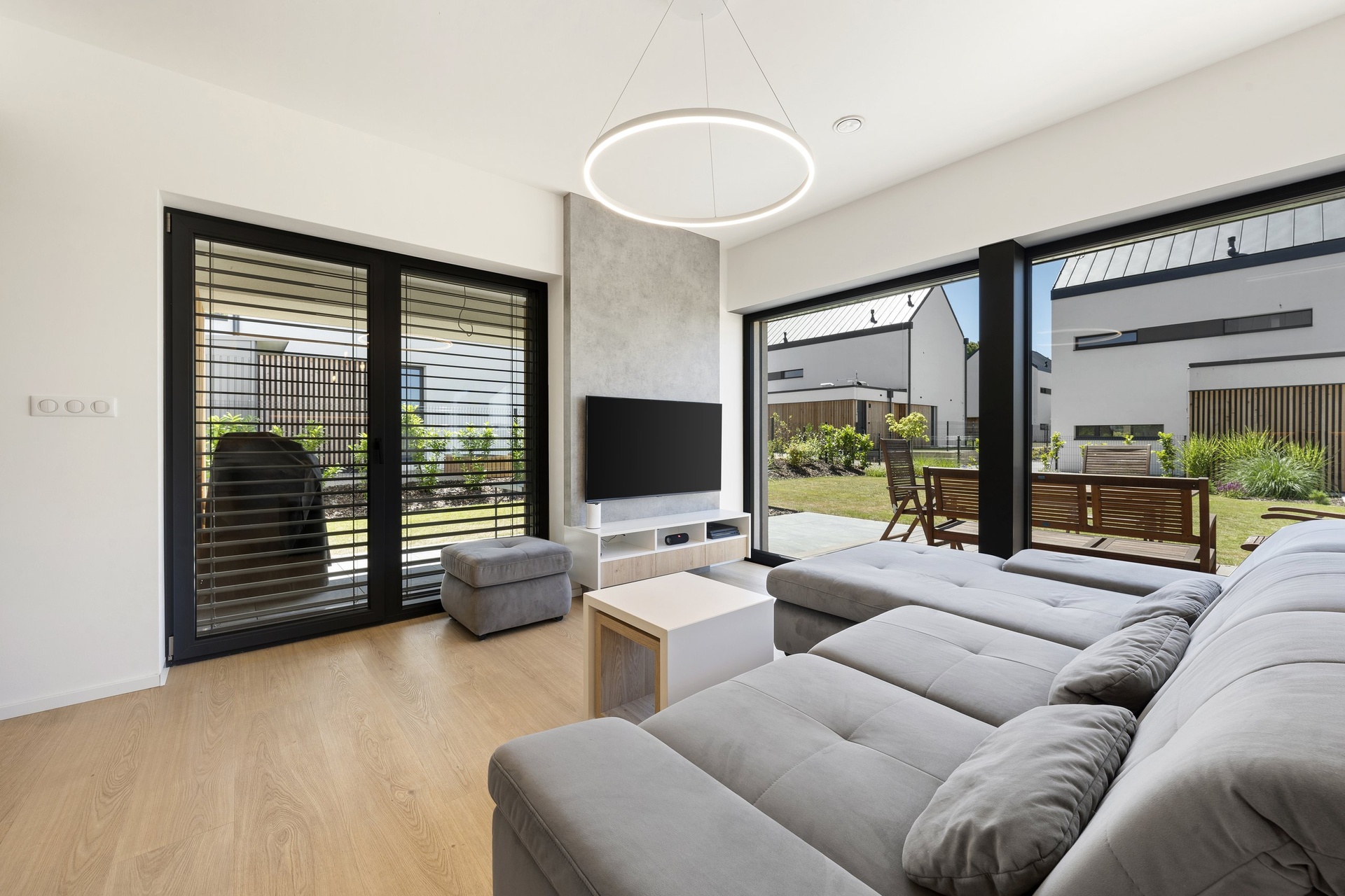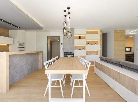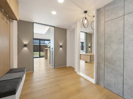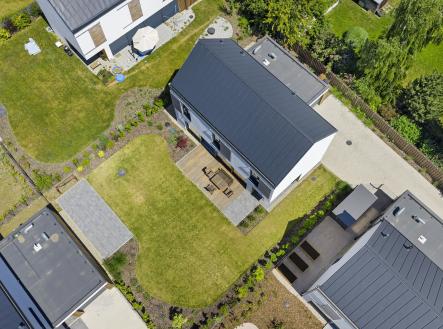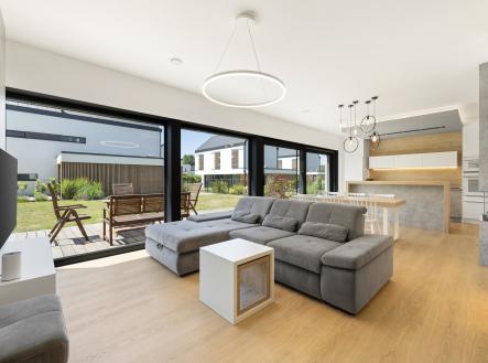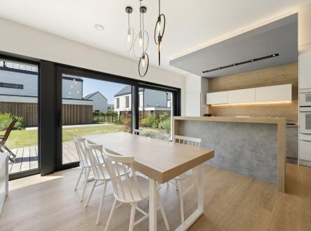 Exkluzivní nabídka na prodej luxusní novostavby pasivního rodinného domu 4+kk s pracovnou a garáží v malebné obci Přezletice. Tento moderní dvoupodlažní dům je ideálním místem pro rodinný život, kde se snoubí komfort s úsporou energie. Díky tepelnému čerpadlu a rekuperaci vzduchu si můžete užívat příjemné klima po celý rok, a to s minimálními náklady na vytápění. Tento moderní a energeticky úsporný dům nabízí promyšlené dispoziční řešení, kvalitní provedení a pohodlné zázemí pro celou rodinu. Celý dům je kompletně a profesionálně navržen interiérovým studiem ZAKI Design, známým z televizního pořadu Jak se staví sen. Díky tomu je každý detail v domě pečlivě sladěn, nábytek byl vyroben na míru a interiér je maximálně funkční i estetický. Prostor působí vzdušně, harmonicky a útulně zároveň. Interiér domu je navržen s důrazem na kvalitu a funkčnost. Dispozice: V přízemí se nachází prostorná vstupní předsíň, světlý obývací pokoj s velkoformátovými okny a vstupem na terasu, propojený s jídelnou a kuchyňským koutem. Okna jsou vybavena venkovními elektrickými žaluziemi, které zajišťují soukromí a tepelný komfort. Dále je zde pracovna, praktická komora a koupelna se sprchovým koutem. V patře najdete tři ložnice – hlavní ložnice má vlastní koupelnu se sprchovým koutem a toaletou a prostornou šatnu, dva dětské pokoje jsou vybaveny chytrými vestavnými patry, která šetří místo a přinášejí další hrací i úložný prostor. K dispozici je zde také druhá koupelna s vanou a samostatné WC. Technologie a vybavení: Dům splňuje standardy pasivní výstavby. Vytápění je řešeno úsporným tepelným čerpadlem, nechybí systém řízeného větrání s rekuperací tepla, který zajišťuje stálý přísun čerstvého vzduchu bez tepelných ztrát. Díky tomu jsou provozní náklady mimořádně nízké. PENB A - mimořádně úsporná budova. Exteriér: Zahrada je pečlivě upravená, s okrasnými záhony a automatickým zavlažovacím systémem napojeným na nádrž na dešťovou vodu. Terasa navazující na obývací pokoj nabízí příjemný prostor pro relaxaci a posezení. K domu náleží prostorná garáž a zpevněný příjezdový prostor pro další parkování. Klíčové vlastnosti: Pasivní dům s nízkými provozními náklady Podlahové vytápění a chlazení systémem push - tepelné čerpadlo a rekuperace vzduchu Moderní dispozice 4+kk + pracovna a garáž s důrazem na praktičnost Tři koupelny, tři toalety Venkovní elektrické žaluzie v přízemí, horní posuvné Automatická závlaha - dešťová voda je shromažďována v podzemní nádrži, upravená zahrada, terasa Garáž + parkovací stání Klidná lokalita s výbornou dostupností do Prahy Příprava na instalaci fotovoltaické elektrárny s možností rozšíření o bateriové úložiště a nabíjecí stanici pro elektromobily Dům je ideální volbou pro ty, kdo hledají spojení moderního stylu, energetické efektivity a pohodlného bydlení v blízkosti hlavního města. Přezletice jsou velmi vyhledávanou lokalitou s výbornou dostupností do Prahy – autem jste na okraji města za 10 minut, MHD (bus na metro Letňany) je dostupný pěšky pár minut od domu. Obec nabízí veškerou základní občanskou vybavenost – nová základní a mateřská školka, restaurace, pošta, obchody, dětská hřiště. V blízkosti se nachází nákupní centrum Černý Most nebo OC Letňany.